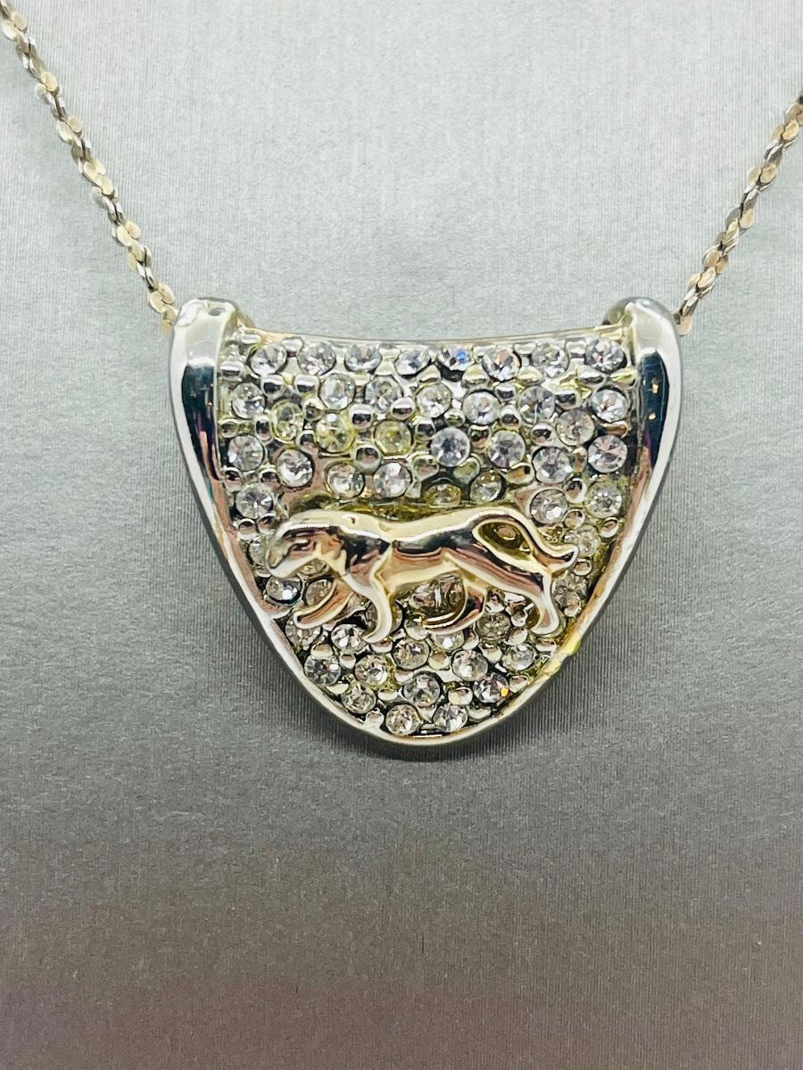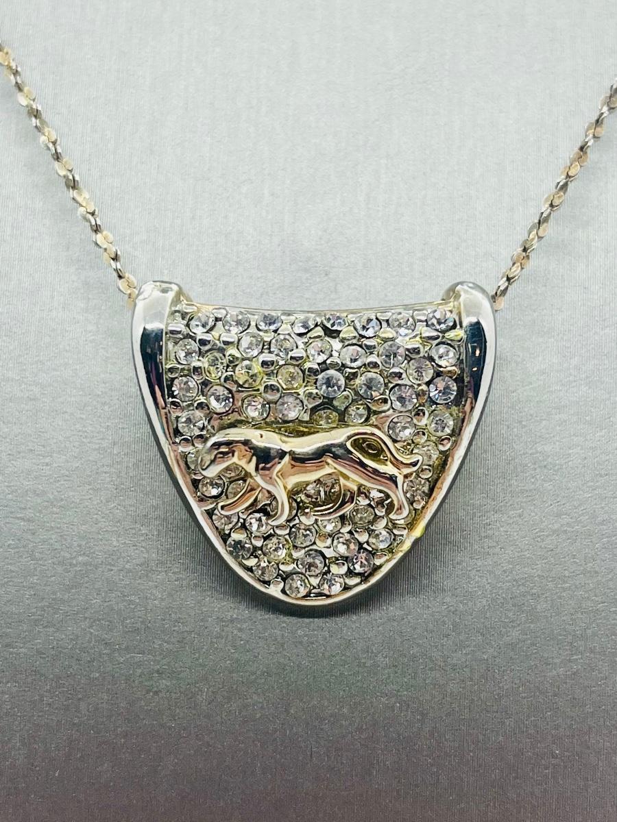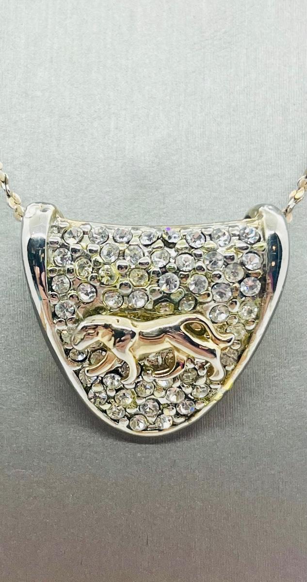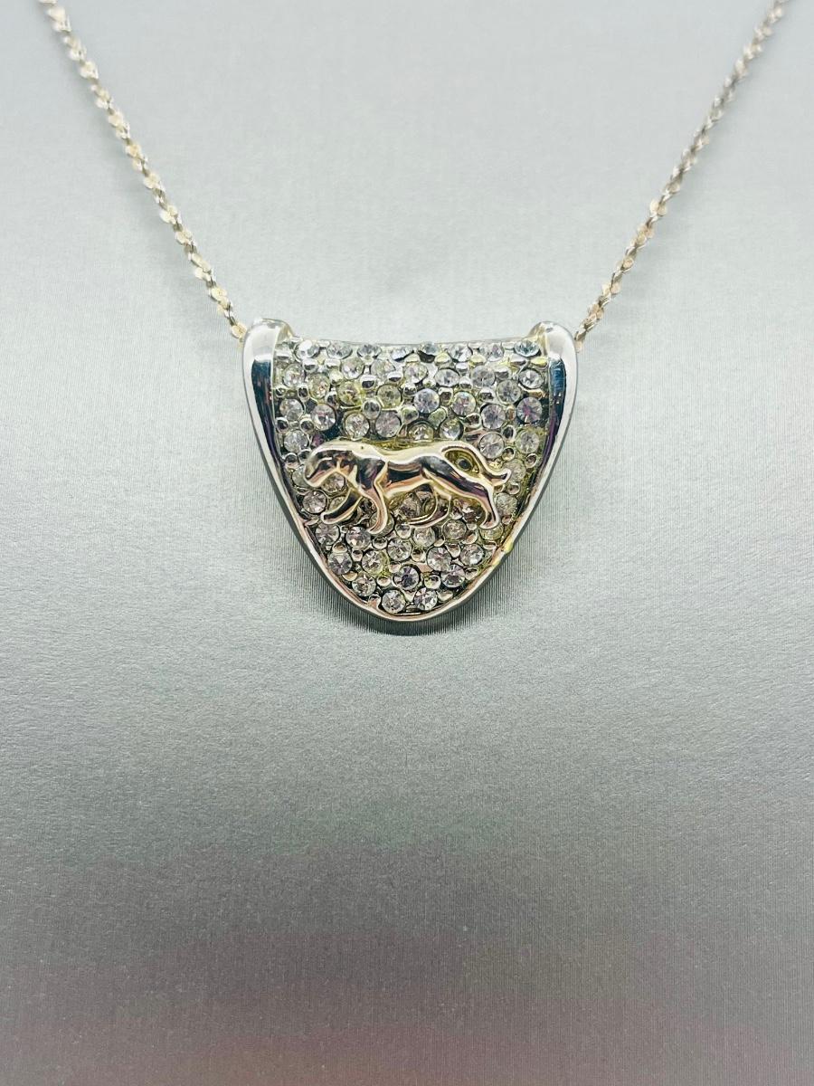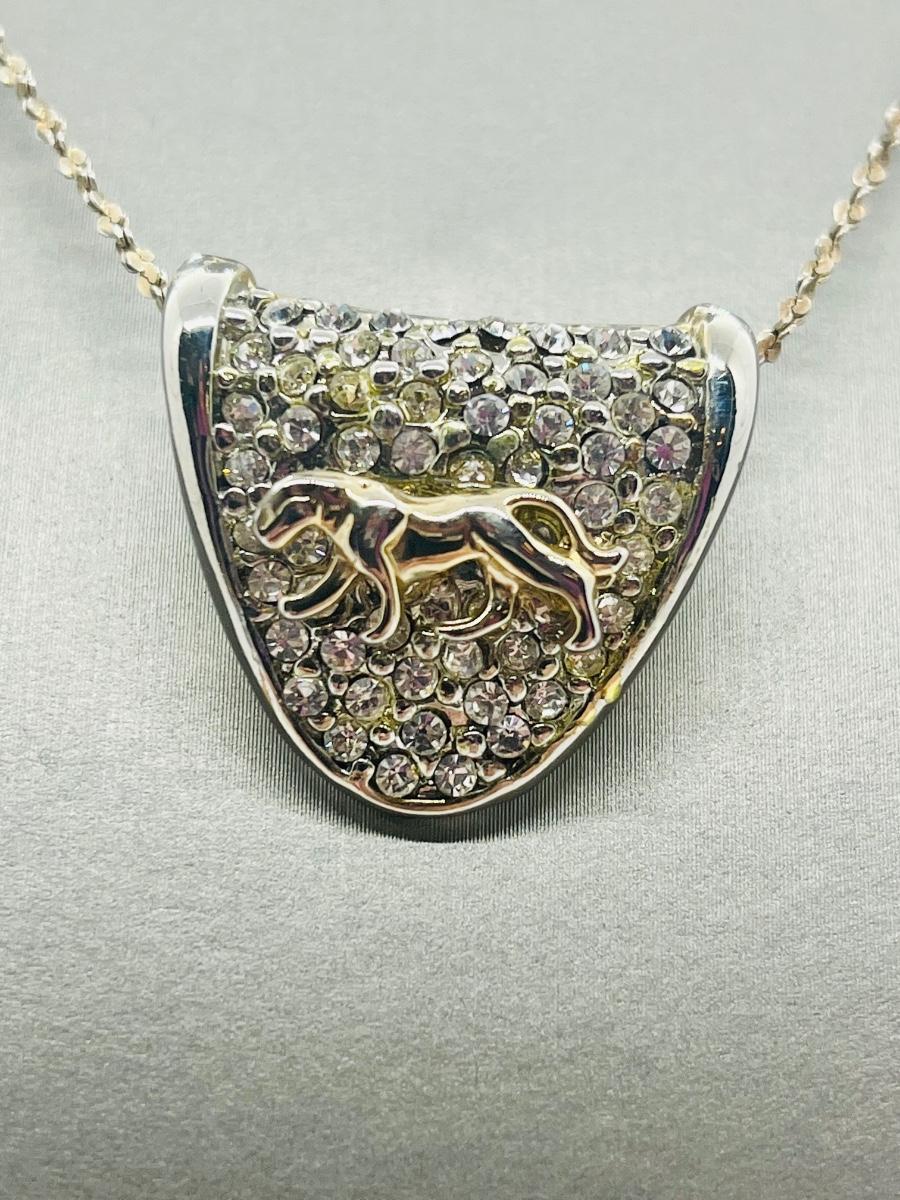 Lot 139: Silvertone Slider Pendant Covered in CZ's with Goldtone Panther