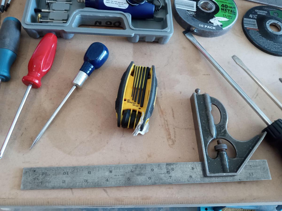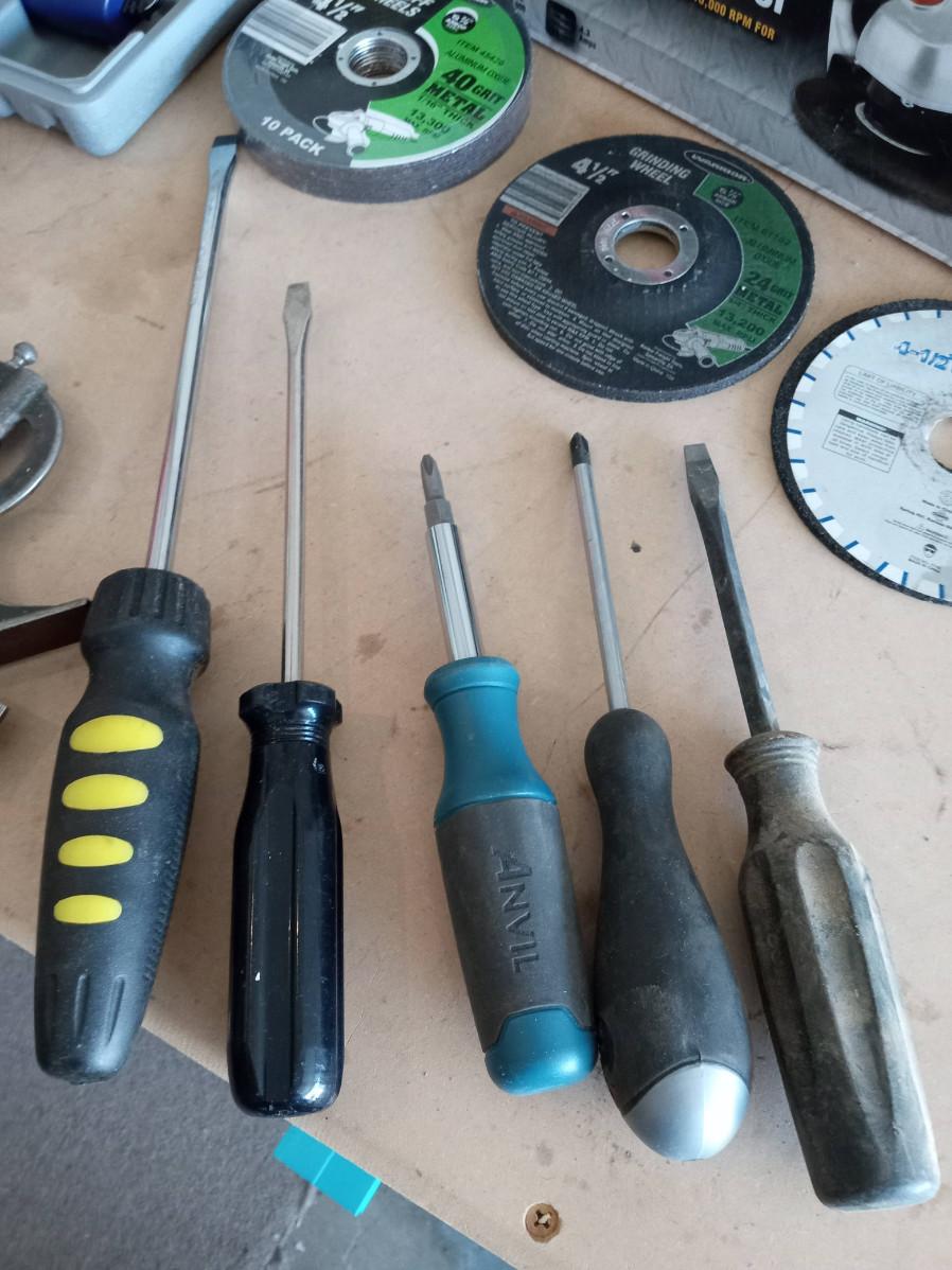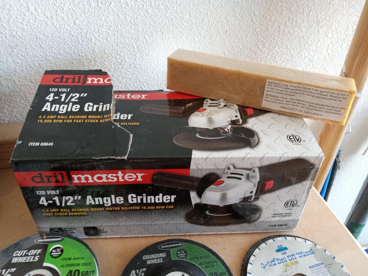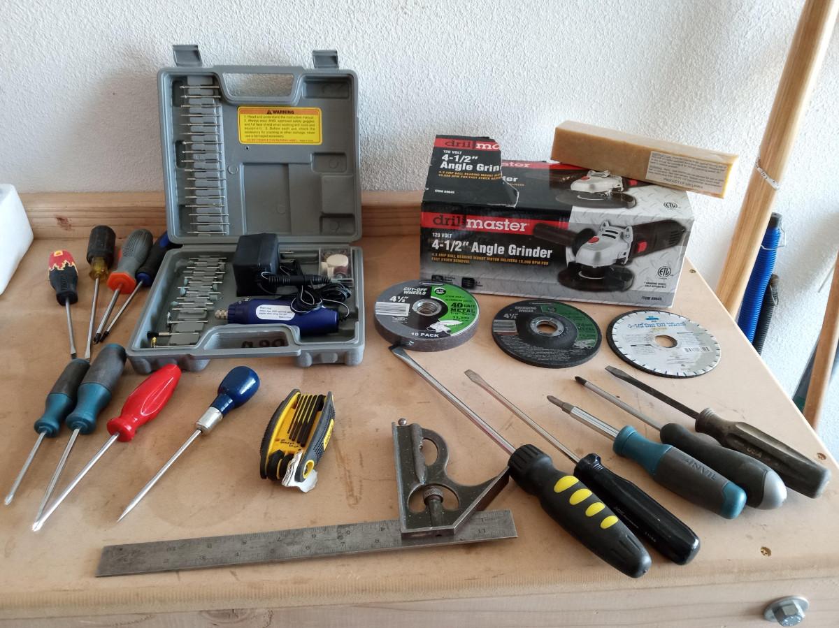 EXTRA GRINDING WHEELS, SCREWDRIVERS, ALLEN WRENCHES, LEVEL AND MORE