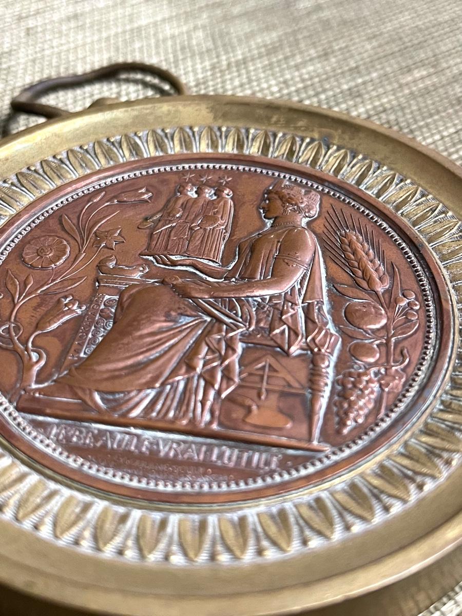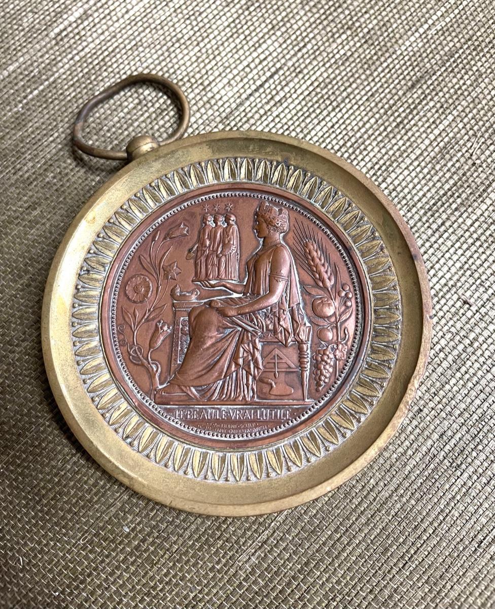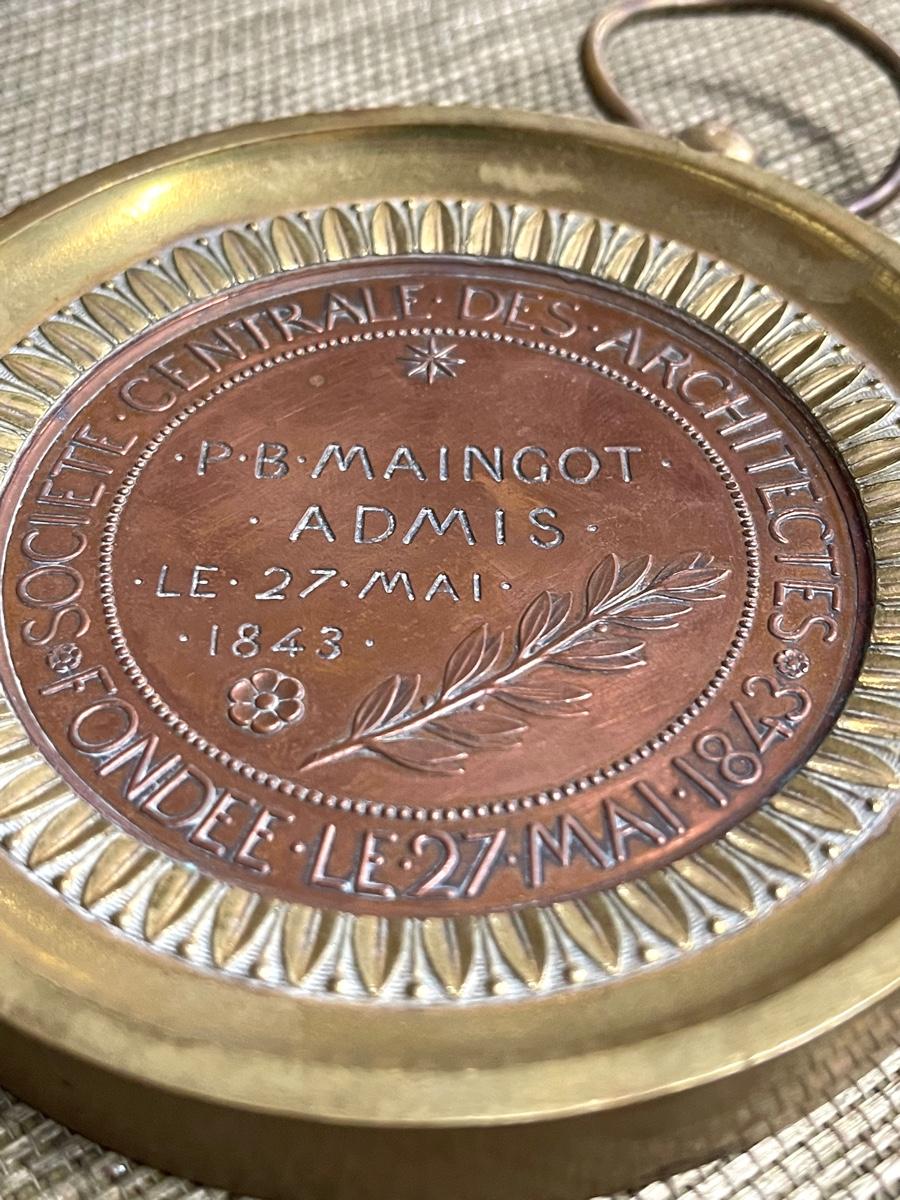 LOT 139 - Architecture Medal sculpted by E.A. Oudine. This was given in 1843 in France. Copper metal with brass frame. This item is part of the David-Pleydell-Bouverie Estate at Bouverie Ranch in Glen Ellen. This item can be viewed at our Green + Cate Showroom in Sebastopol from July 15th - July 18th between the hours of 9am-5pm. For the benefit of the Bouverie Preserve of Audubon Canyon Ranch.