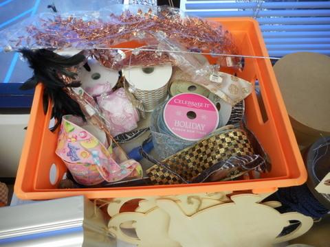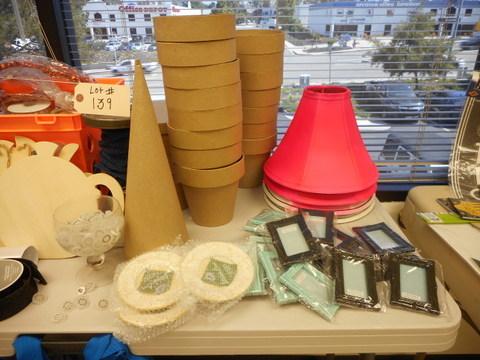Assorted goodies for your crafting projects. The stacks of pressed cardboard planter pots were for children to paint at party events.