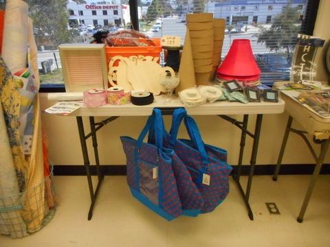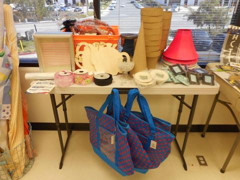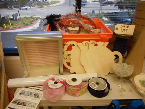 Lot 139 - Craft Lot - Wall decals, Shadow box, Ribbon, Blue/Red Totes + more