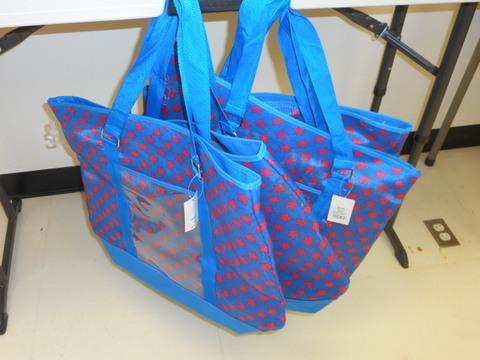 Lot 139 - Craft Lot - Wall decals,  Shadow box,  Ribbon, Blue/Red Totes + more