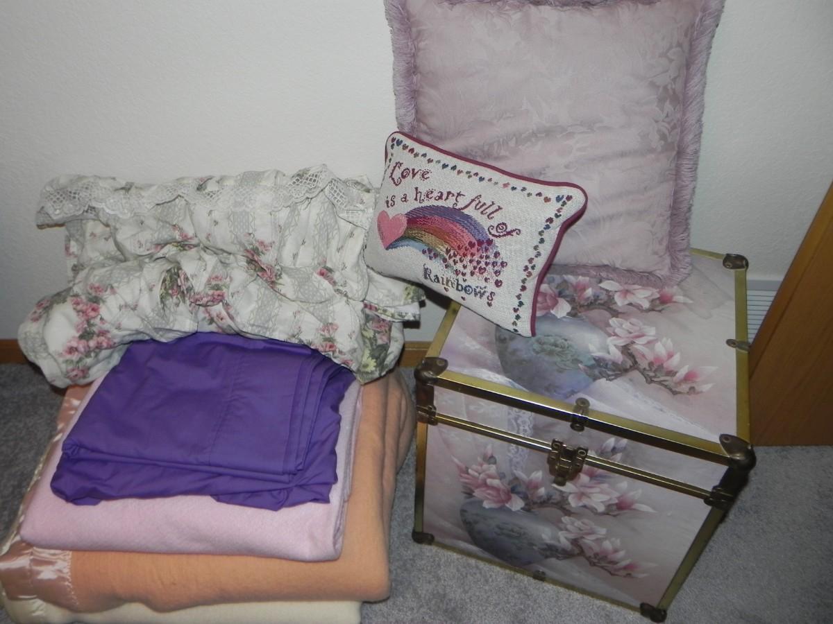 LOT 139 DECOR STORAGE BOX AND BEDDING