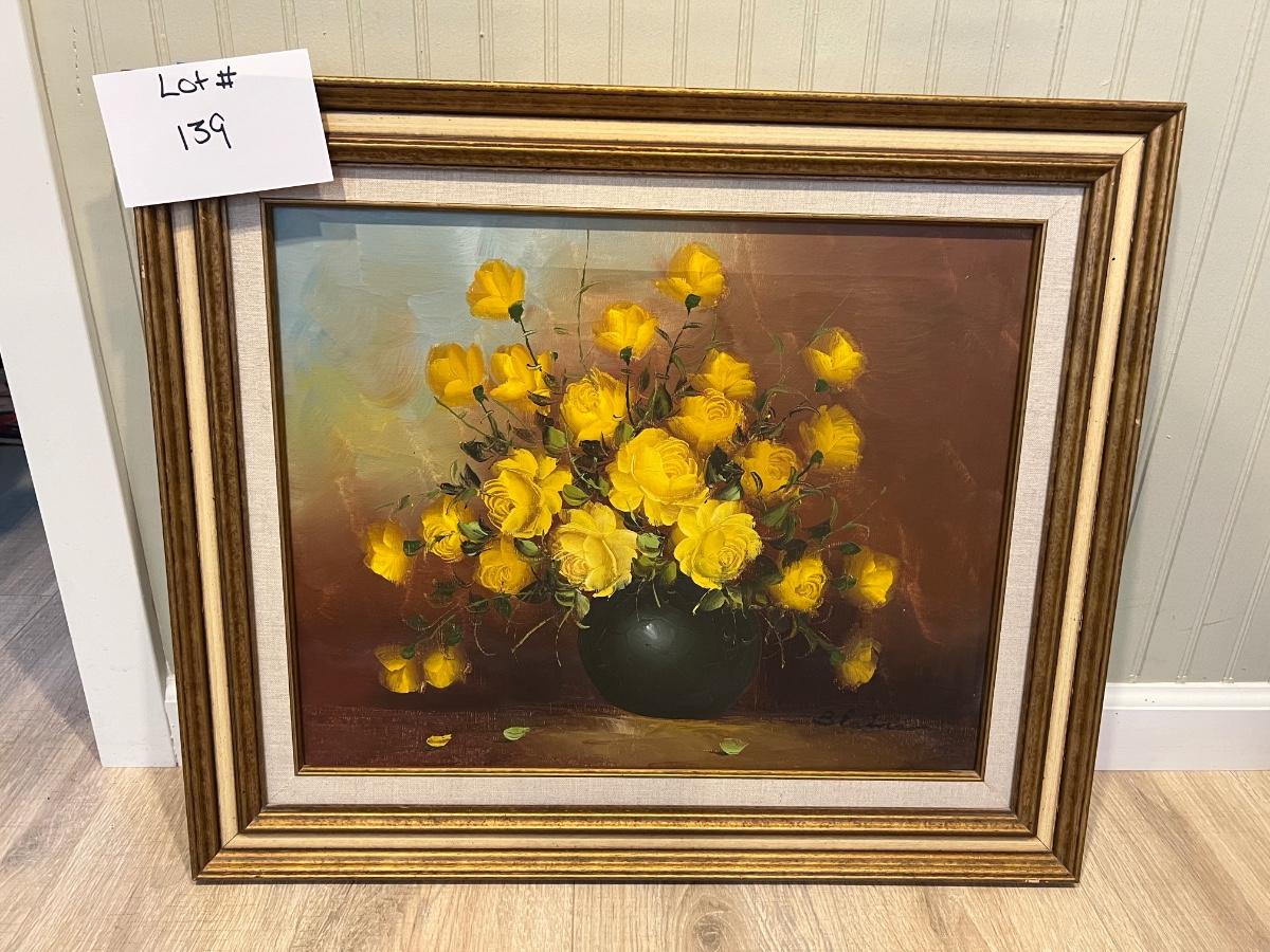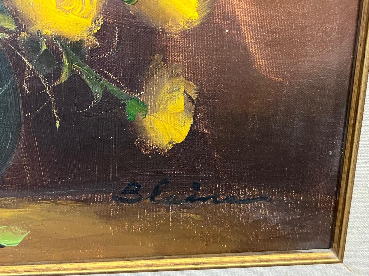 Lot# 139 Framed Signed Blaine Yellow Rose Oil Painting
