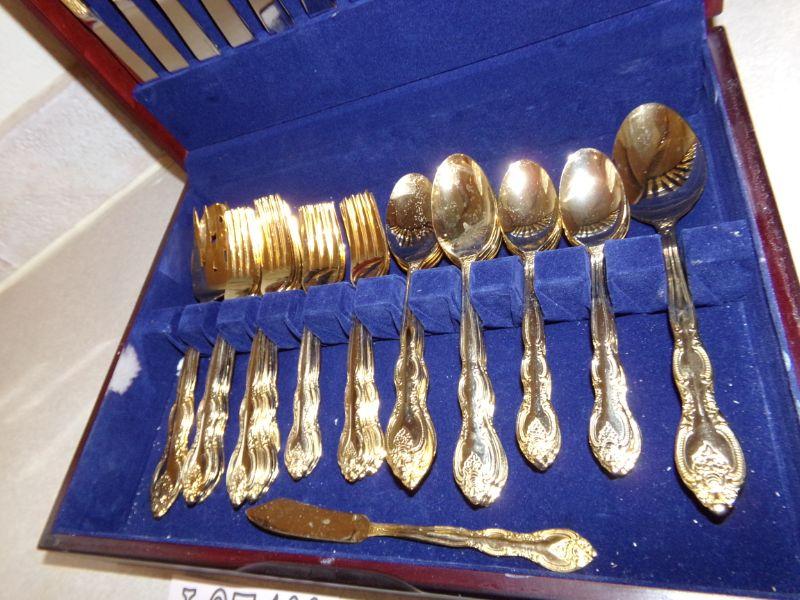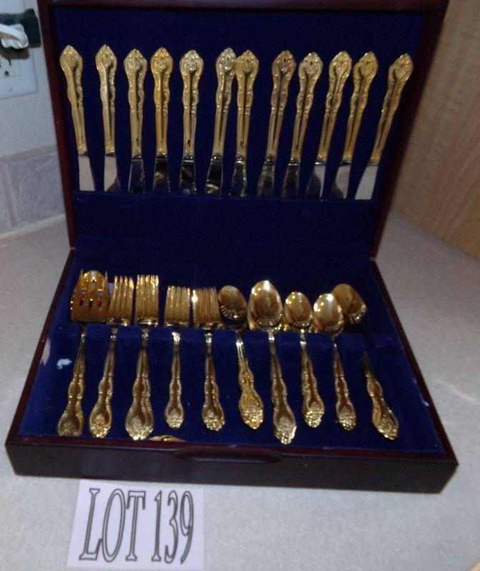 LOT 139 GOLD TONE FLATWARE IN CHEST