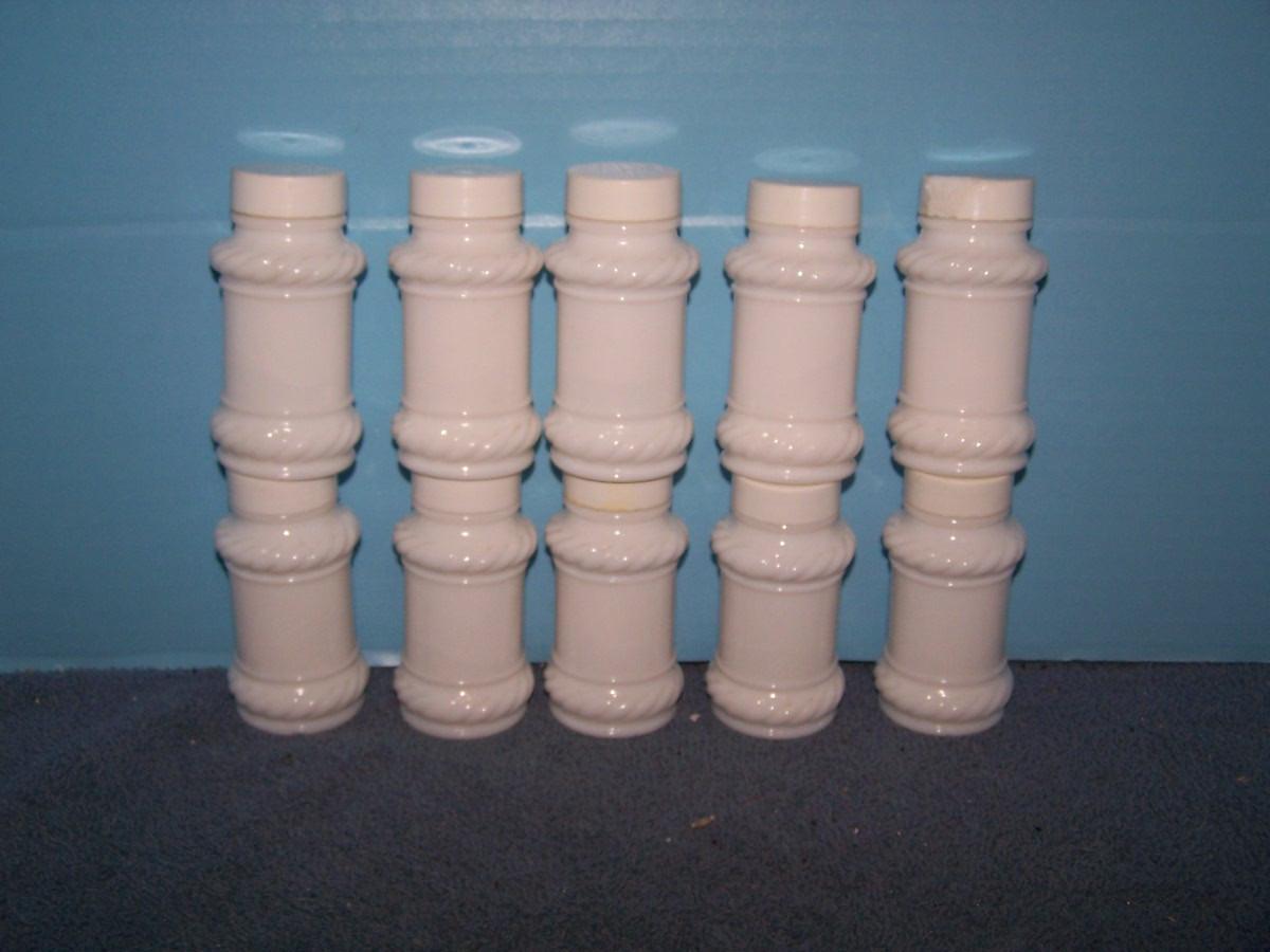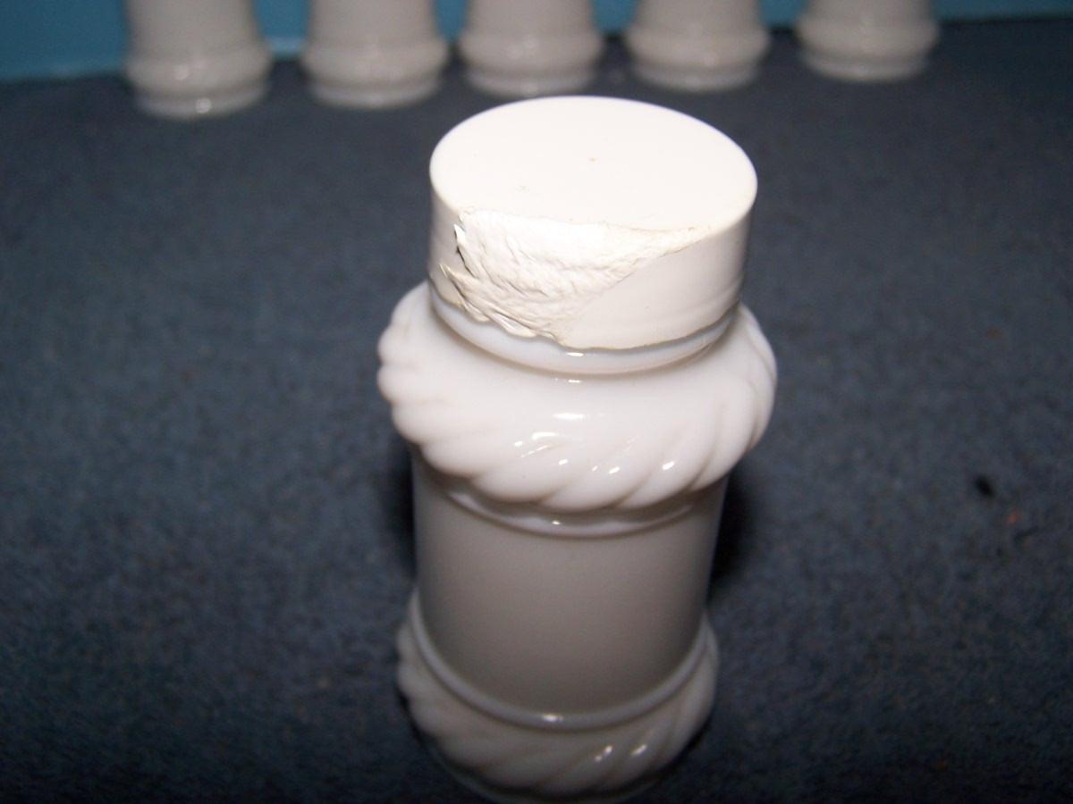 LOT 139 GREAT MCM MILK GLASS ROOSTER SPICE JARS
