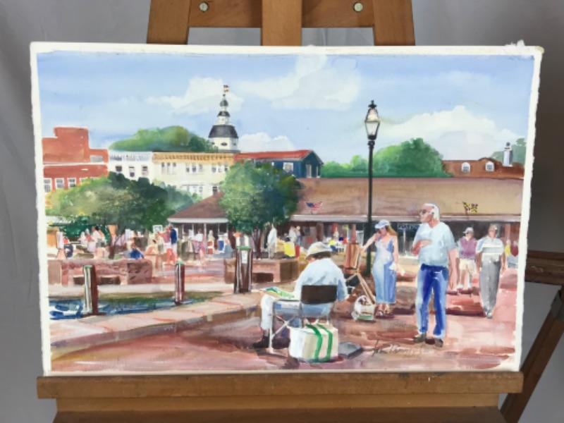 Pair of Jean Ranney Smith signed original watercolor paintings “Plein Air” measures 22”x16”,