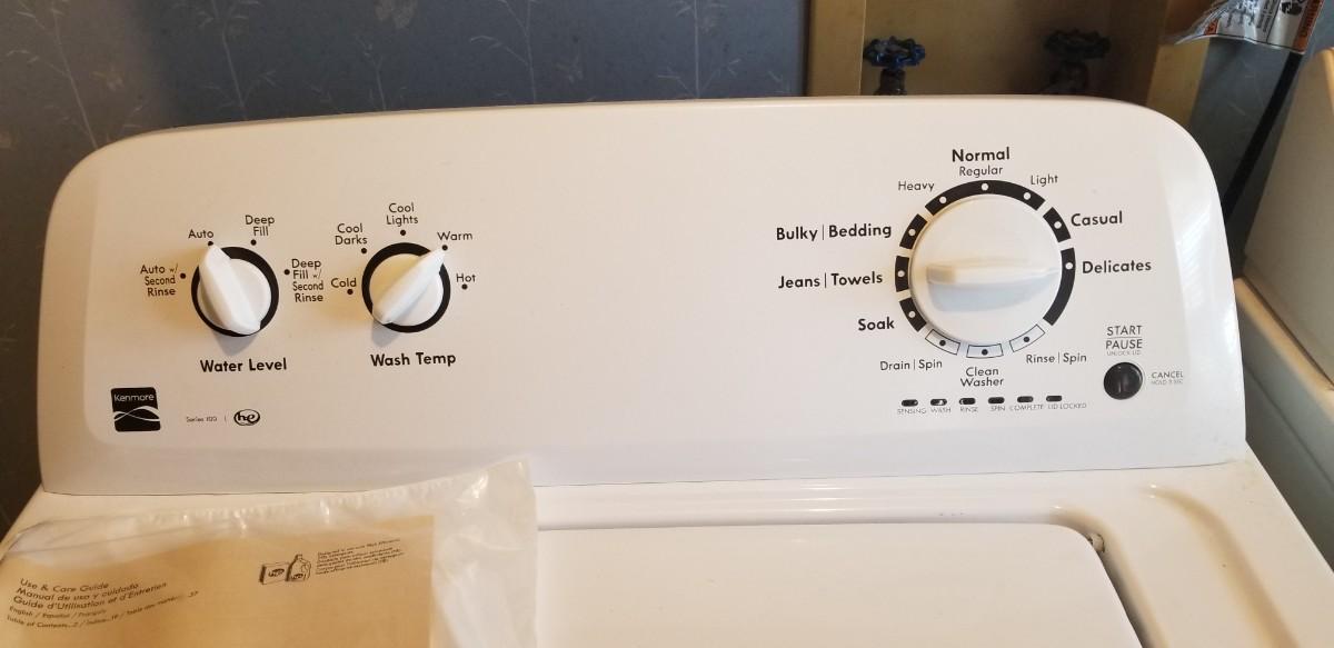 Need a washer??? This Kenmore top load high efficiency washer was recently purchased and is like new. Series 100, comes with book and paperwork. Super clean. Purchaser will need to be able to move and load this themselves.