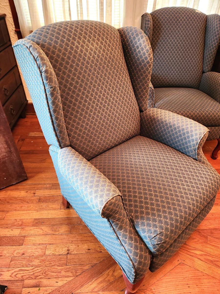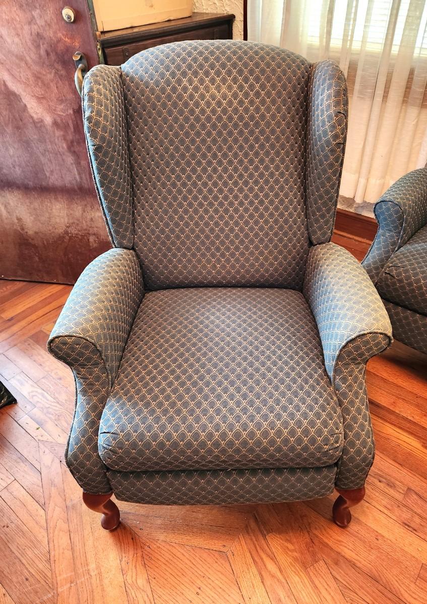 This is the mate to Lot #105. Lane Furniture Wingback recliner - Queen Anne style. Good working condition.