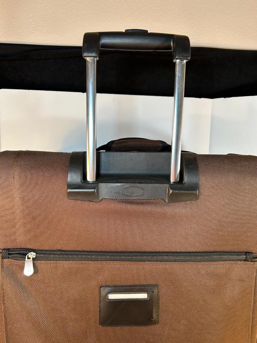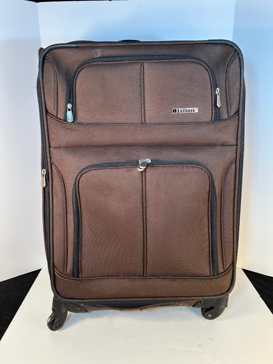 good condition 30"H x 20"L x 12"W Leisure brown expandable rolling suitcase. *Lower front pocket zipper doesn't work.