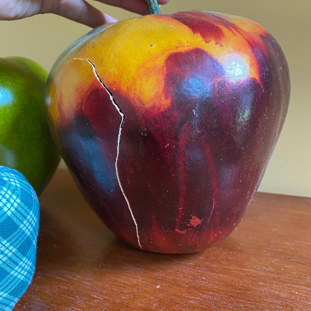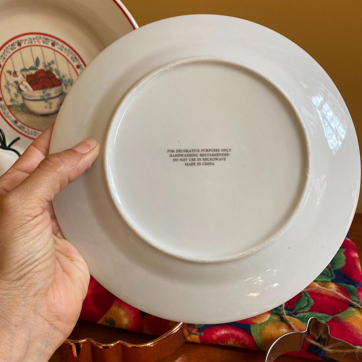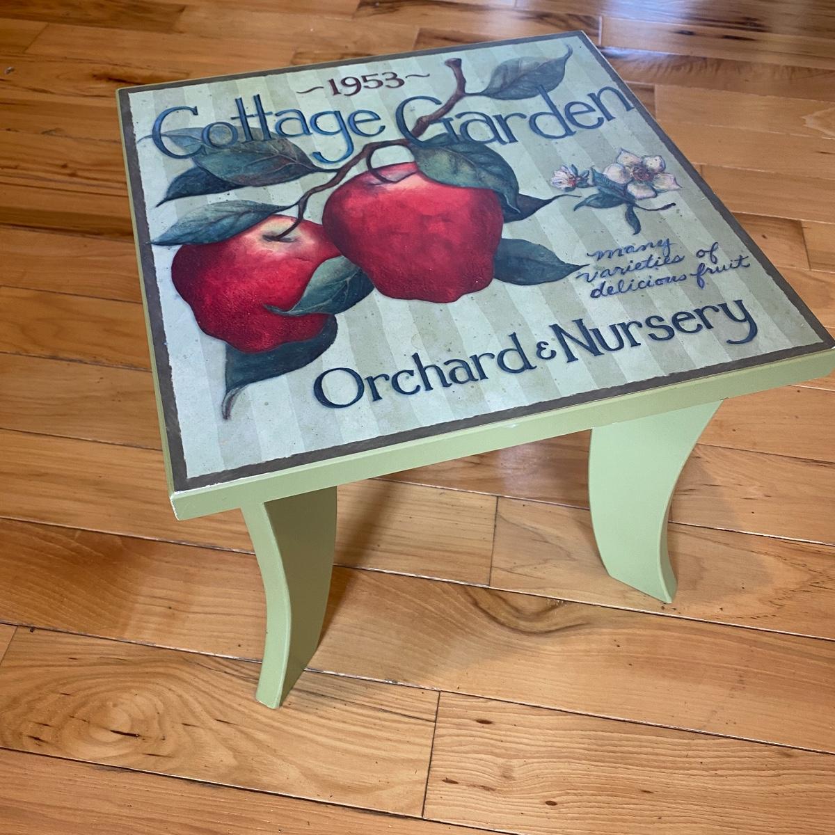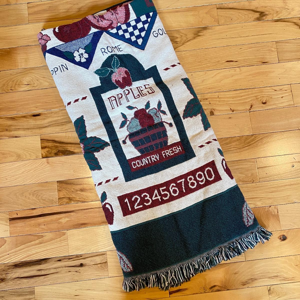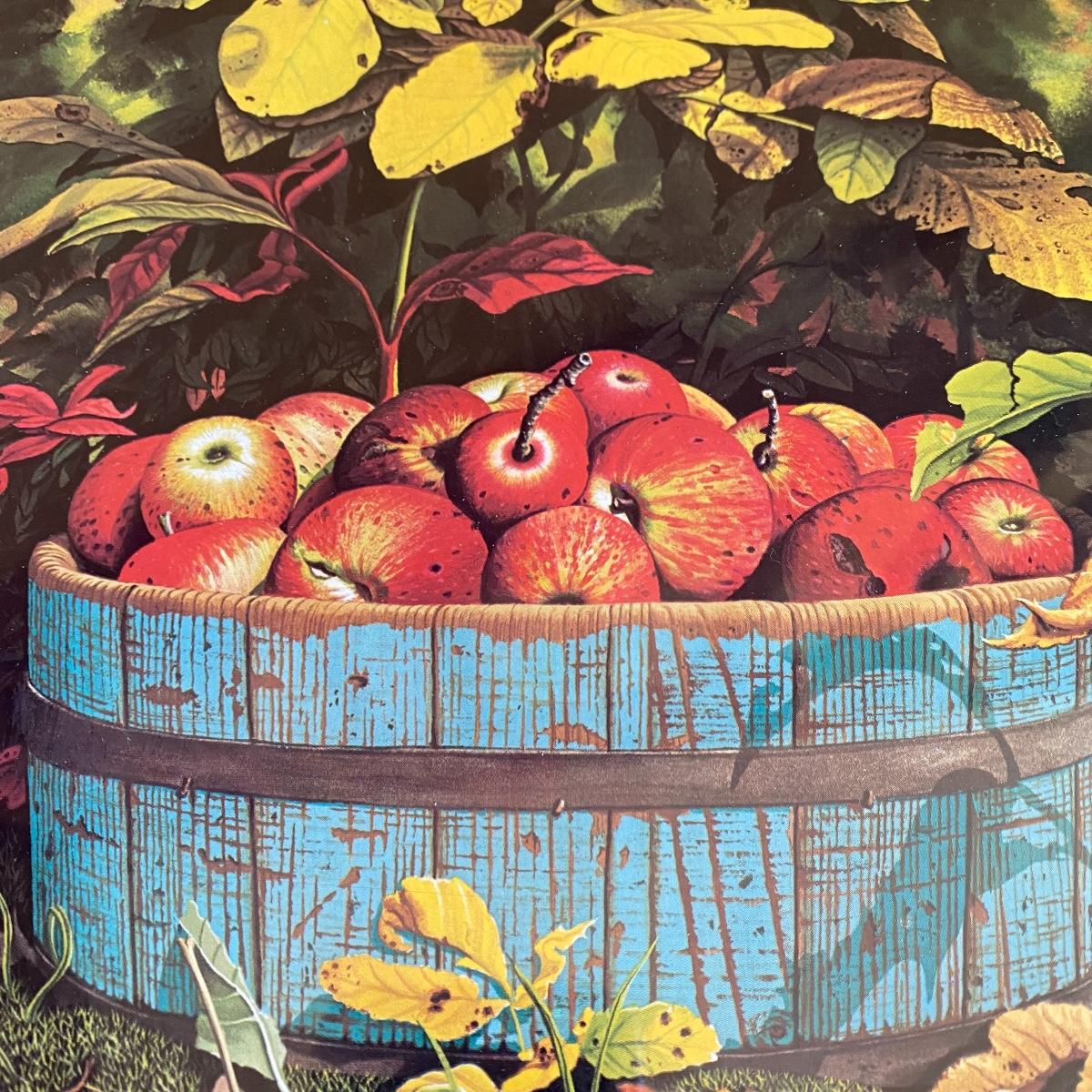 This is the heart of apple country and this lot has all you need to satisfy your cravings. There are apple baskets, art work, stool, plates, storage racks, and signs all with apple motifs. There is a stuffed Boyds bear in apple clothing, several apples made out of ceramics, wood and cloth. There are also sparkly apples to fill your baskets and even an apple apron and an apple blanket. This great lot has fun gifts or just fun decor for your home. Shelving not included. (Tall Shelf is in lot 141.) Large wooden basket with apple motif measures 15”diameter by 9.5” tall. Stool measures 12” square by 10” tall. Largest framed art is by Bob Timberlake and measures 26.5” x 22.5”. Please note that second picture in three picture frame has slid down. See pix. Local pick up only. Clear bin included to help you transport your items.