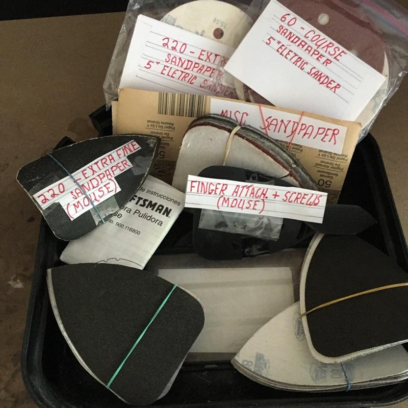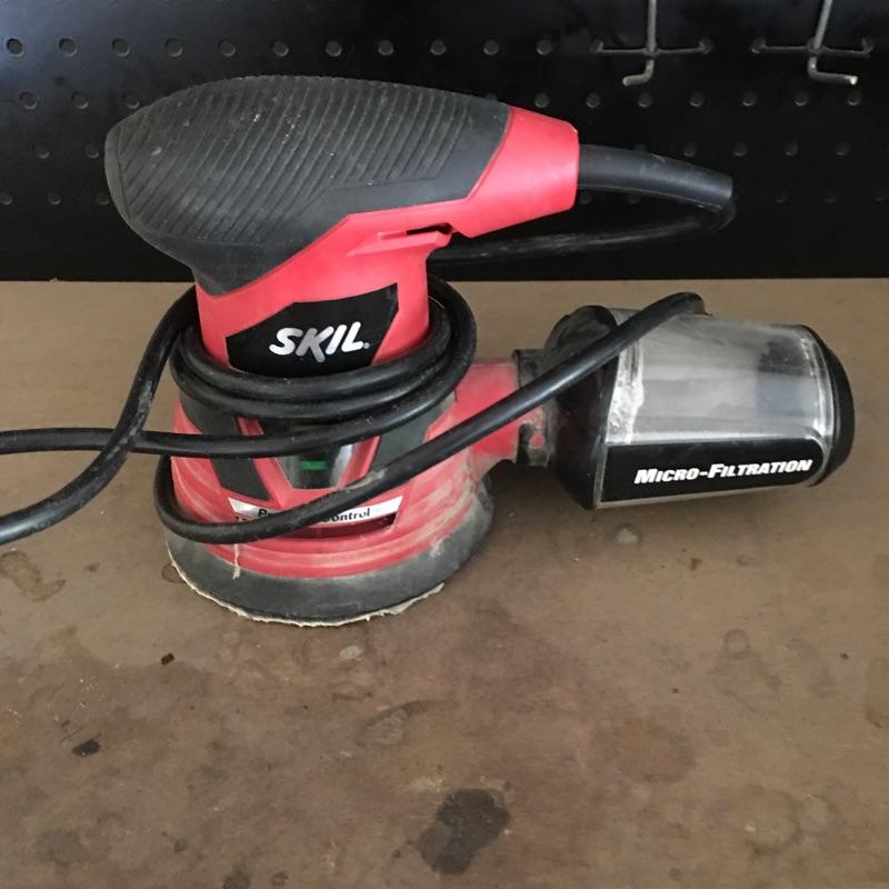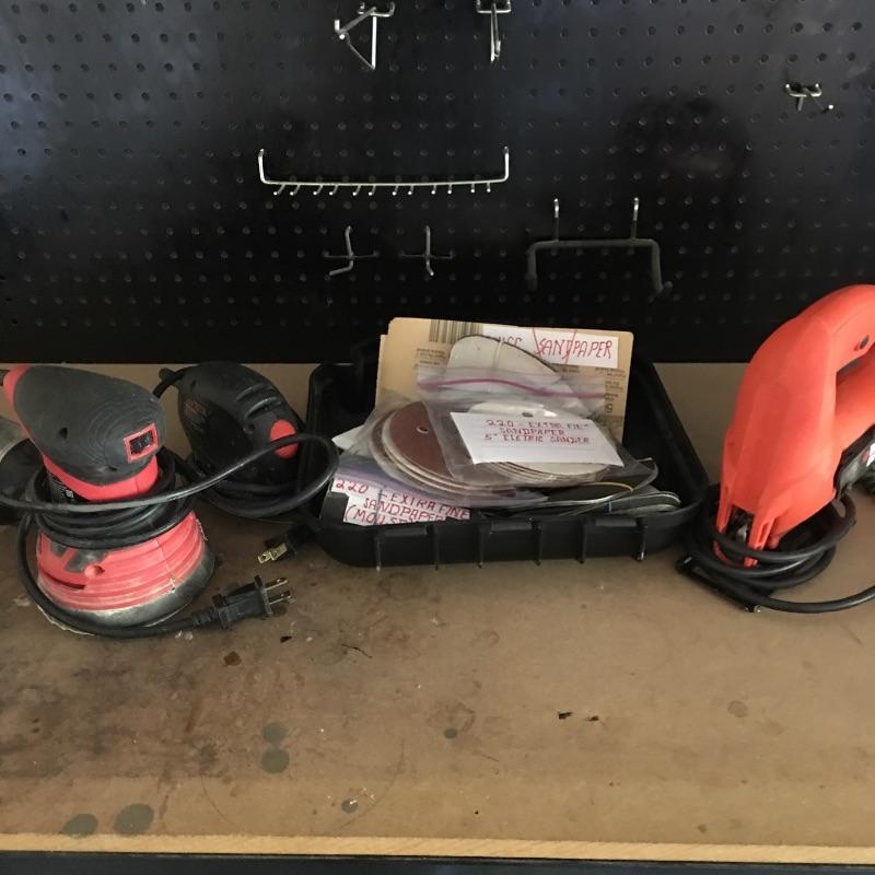 Skil and Mouse palm sanders with extra sand paper and Black and Decker jig saw. Keep things running smooth with these neat tools.