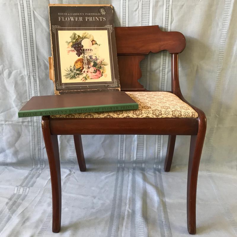 Pennsylvania House Chair measures 20” x 20” x 27” and has a cute low back design. The vintage portfolio of flower prints are by House & Garden. The original box is in terrible condition but the prints are in great condition! Prints measure 14 x 10 for framing. No shipping. Local Pick up Only.