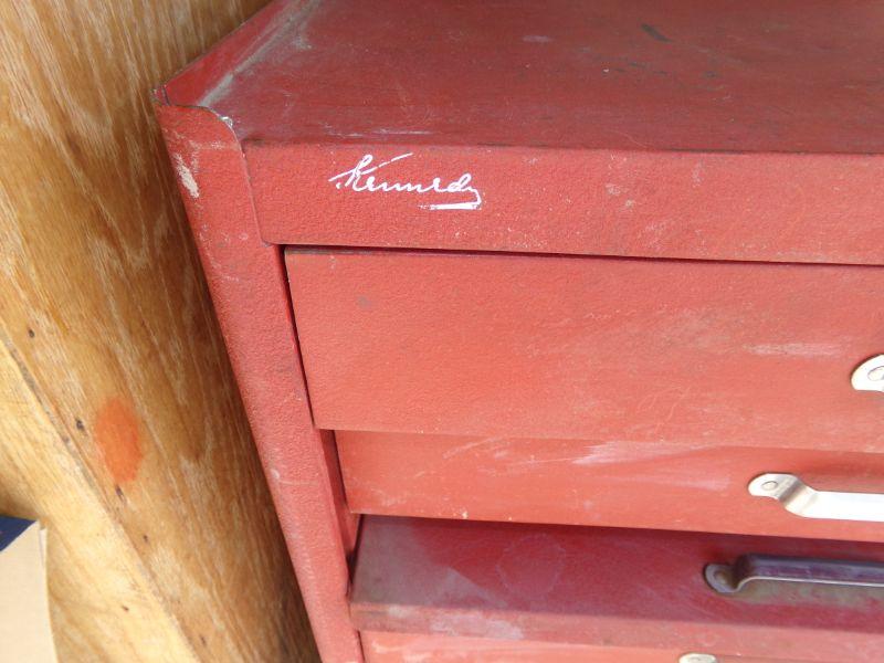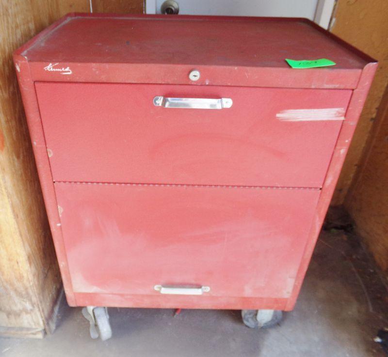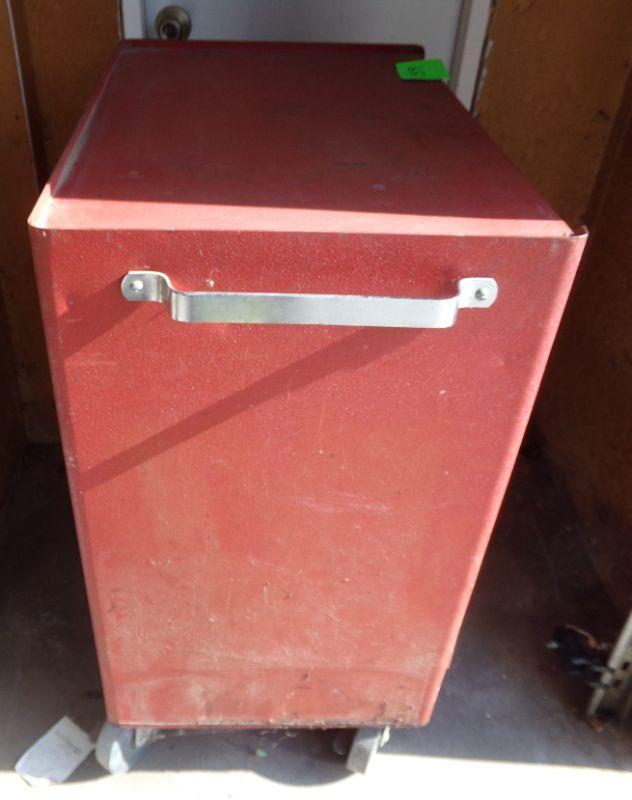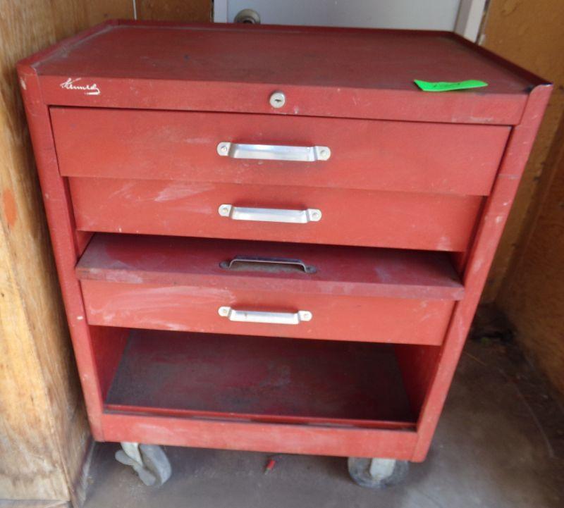 3 DRAWER TOOL CHEST THAT TUCKS DRAWERS BEHIND PANELS, NO KEY 28" X 18" 30" GOOD CONDITION