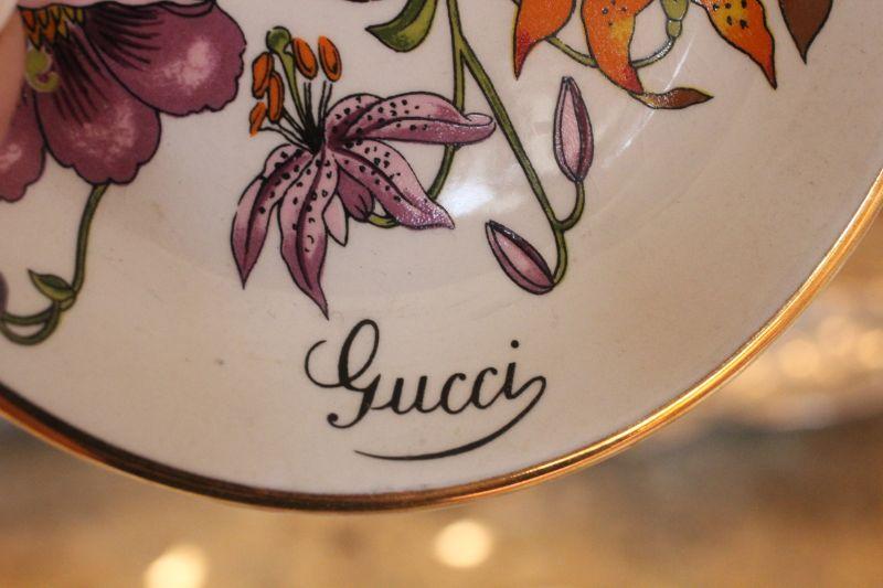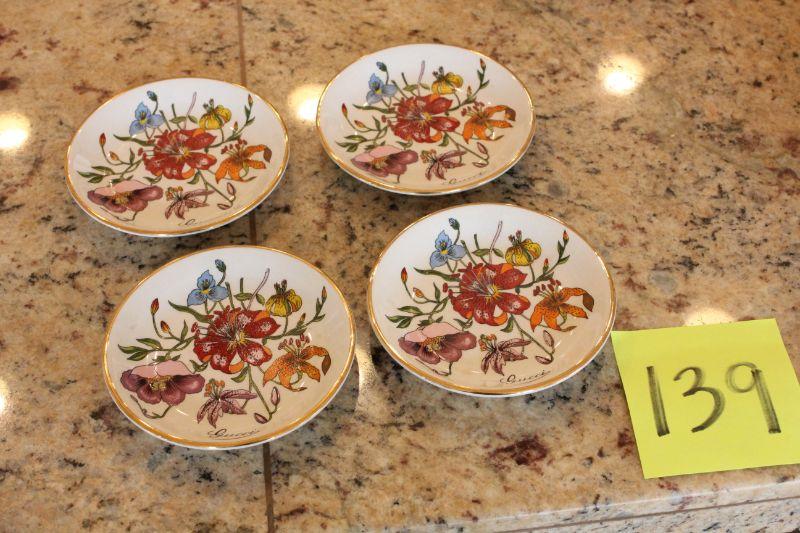 Lot 139 Set of 4 Vintage GUCCI Gold Trim Floral Trinket Plates