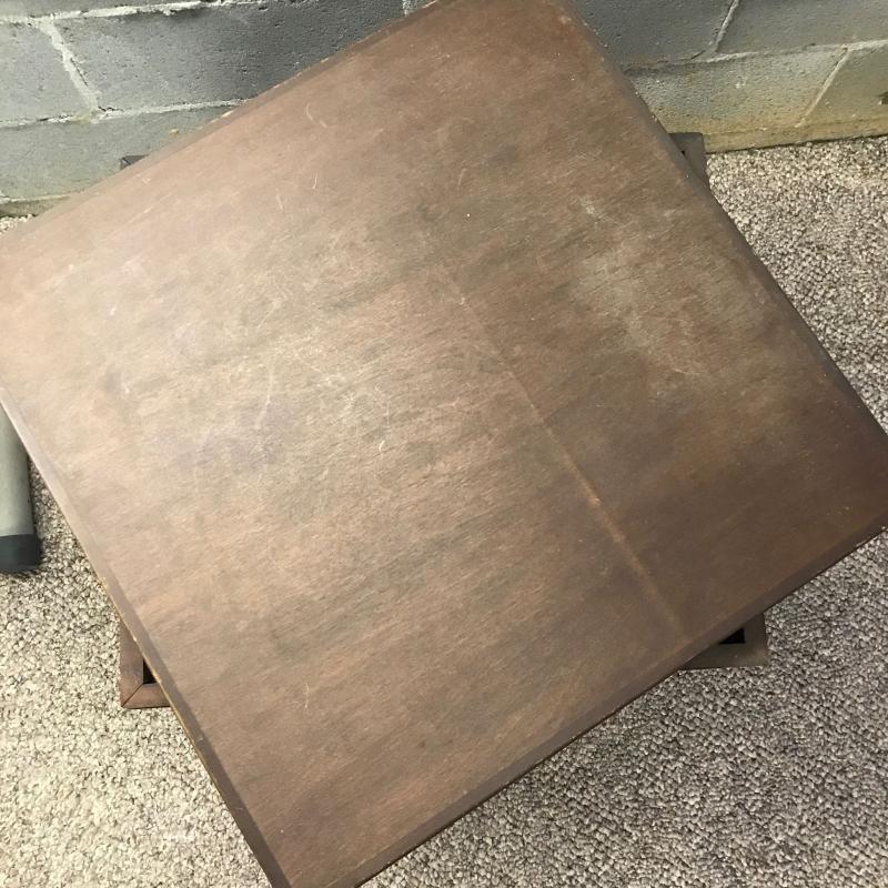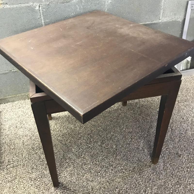 Unique antique coffee table with swivel top. Great for playing games. Approx. 25” x 25” x 25”. No shipping