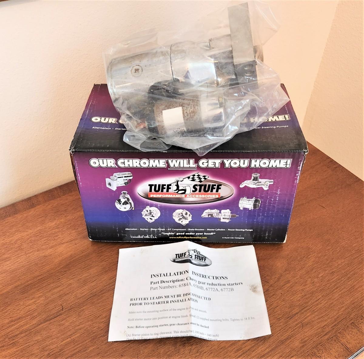 TUFF STUFF Chevy Gear Reduction Starter - has paper - has been garage kept in box. Model 6584A, 1.9 horse power, Chrome casing.