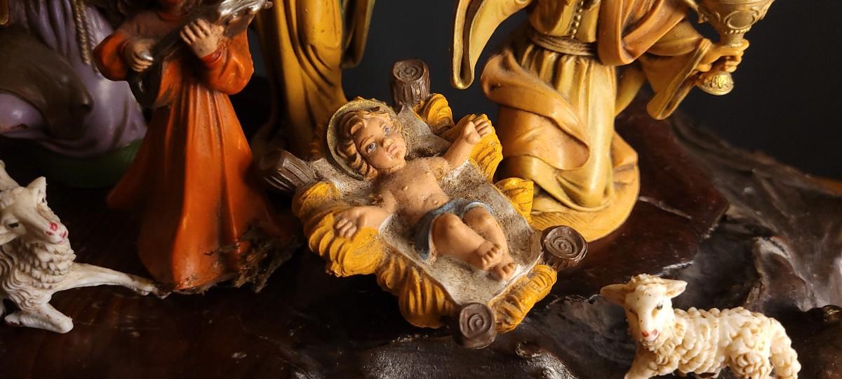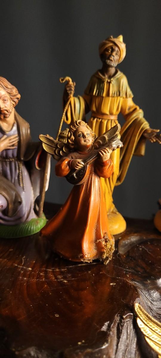 Great little Vintage Italian Manger Set with marking on the 3 Wisemen and the original sticker label retained on one.