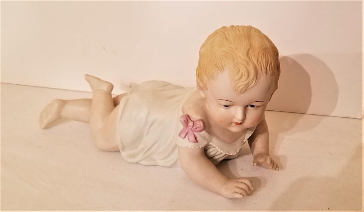 Vintage bisque porcelain Piano Baby by ANDREA - 1950's. Good condition - 10" long, 5" tall.