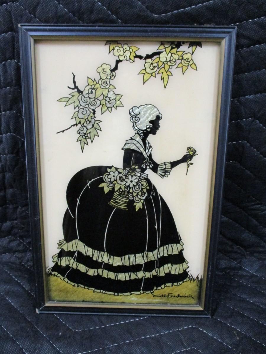 Vintage Silhouette Framed Picture "Old Fashioned Garden"