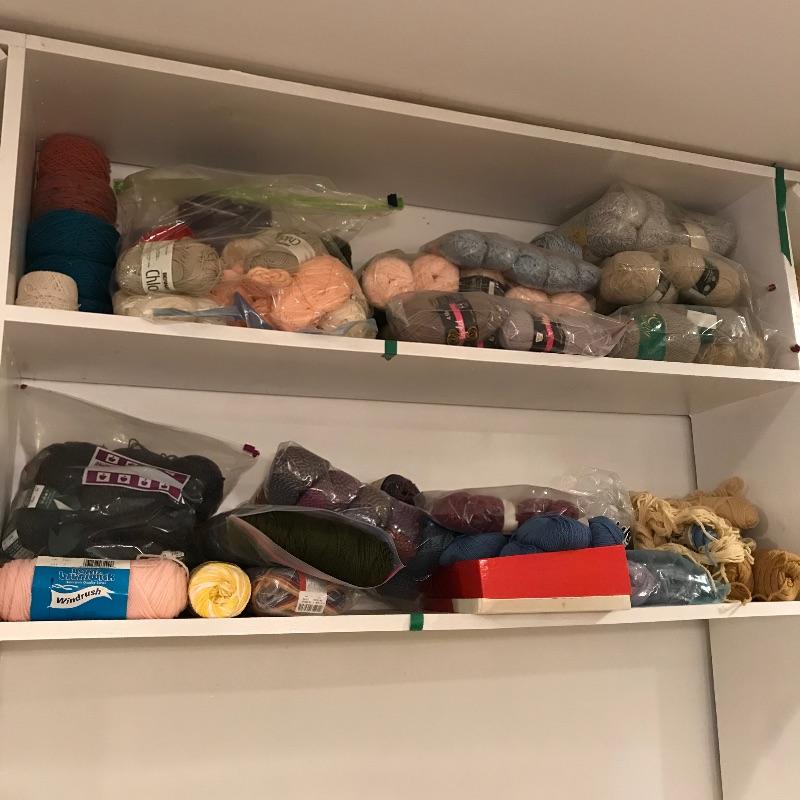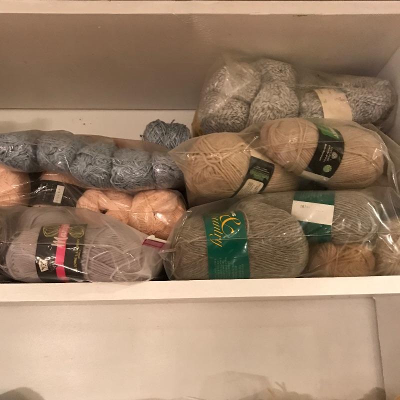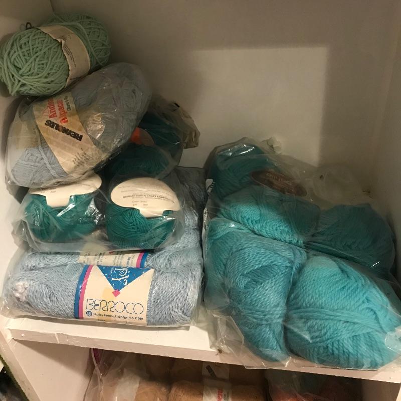 Yet another large selection of yarn, just in time for those winter sweater and couch blanket projects. Like the previous two yarn lots, this collection offers a wide variety of materials, brand names, and colors. See and zoom images for more details. We could not get a clear image of entire lot in one photo. Entire lot inventory can be viewed in the first two images. Buyers please note- we have found pantry moths amongst yarn, we did our best to clear them out, but there may still be a few here and there. Also see lots 133, 136, 142, 145, 160 & 163 for more yarn. Please come to preview to check out all the selections we’re offering! Local pick up only.