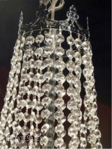 LOT 139A: FRENCH EMPIRE STYLE CRYSTAL CHANDELIER, SILVER FINISH EMBOSSED METAL FRAME, CRYSTAL SWAGS AND DROPS, #2 OF TWO MATCHING CHANDELIERS IN THIS AUCTION (EACH SOLD SEPARATELY). 30"H X 17"W, SKU101