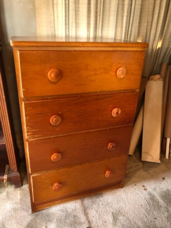 Lot 139B2. Small pine dresser with celluloid knobs (23”W x 13”D x 25”T)--$45