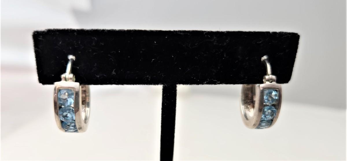 Lot #139D Sterling/Blue Topaz Loop Pierced Earrings