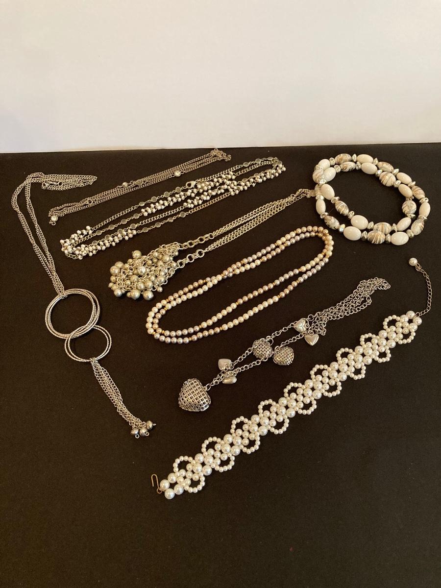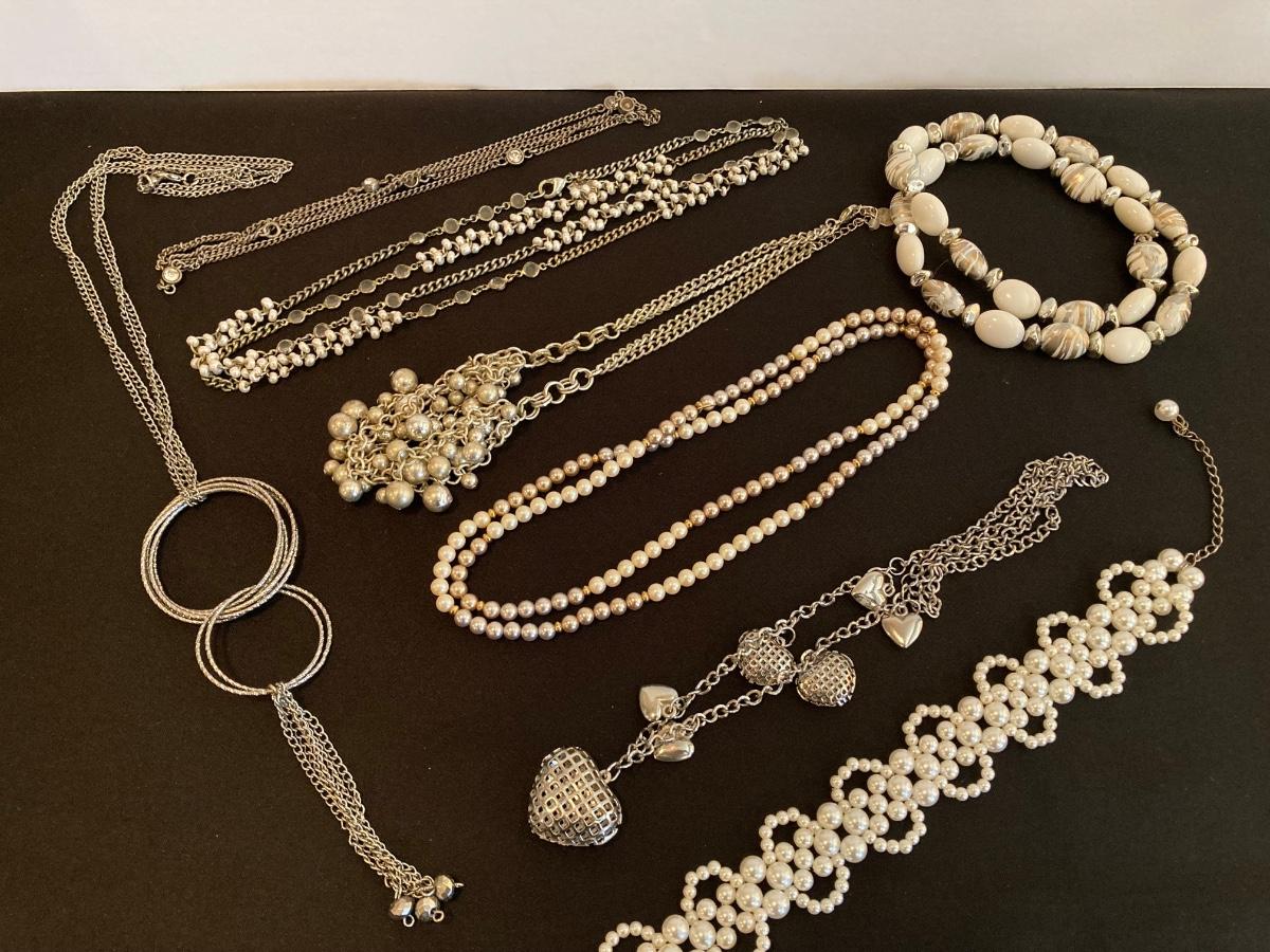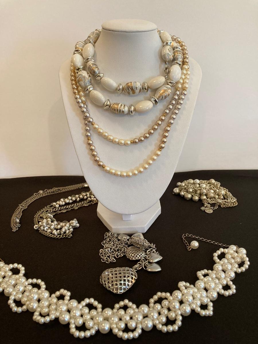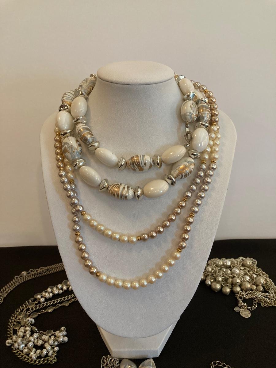 LOT 139J: White and Silver Tone Necklace Collection - Anne Klein, Liz, Monet and More