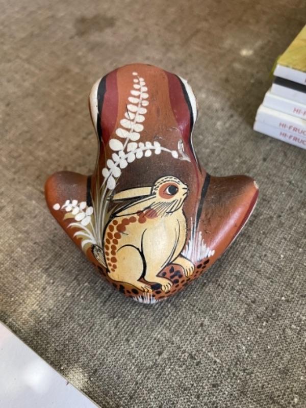 Lot 139OF. Mexican Tonala ceramic Frog, wall décor, folk art, art book and magazines, travel souvenirs--$45