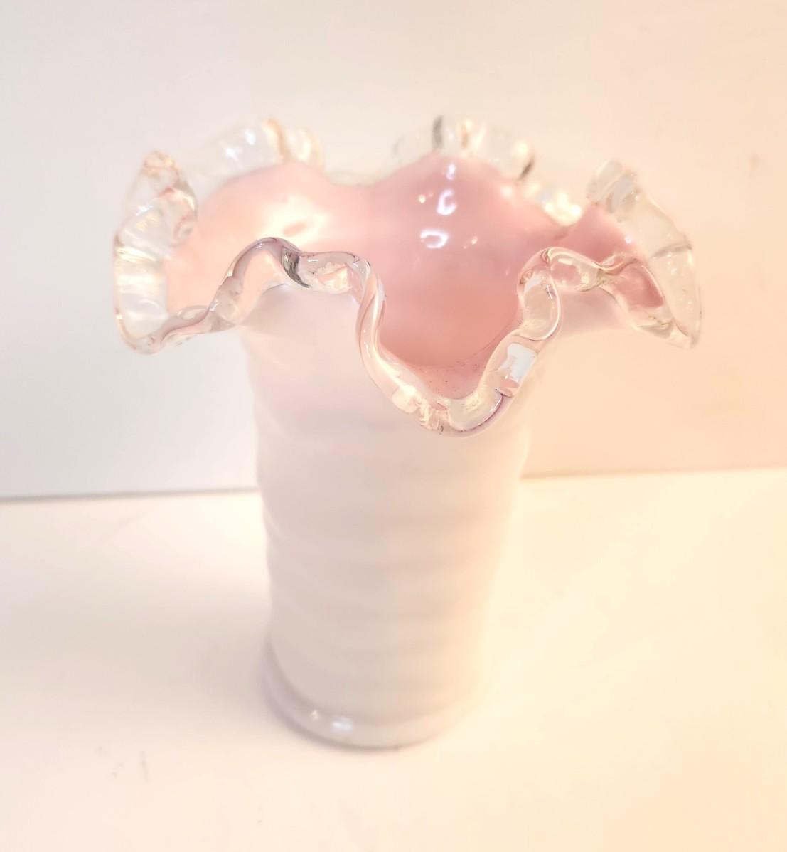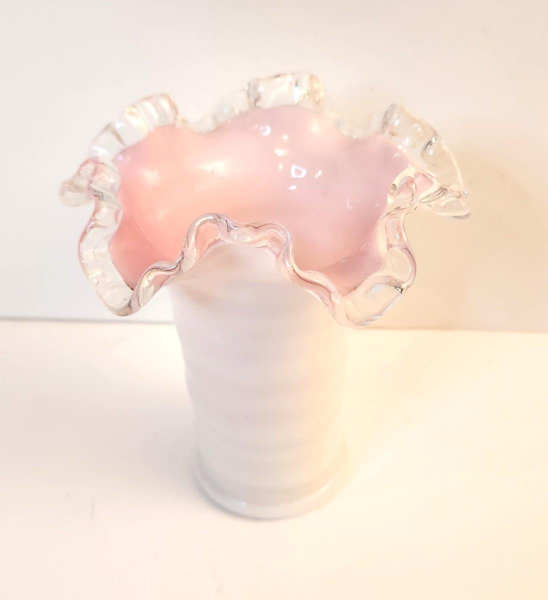 Lot #13D Vintage FENTON Art Glass Peach Crest Vase