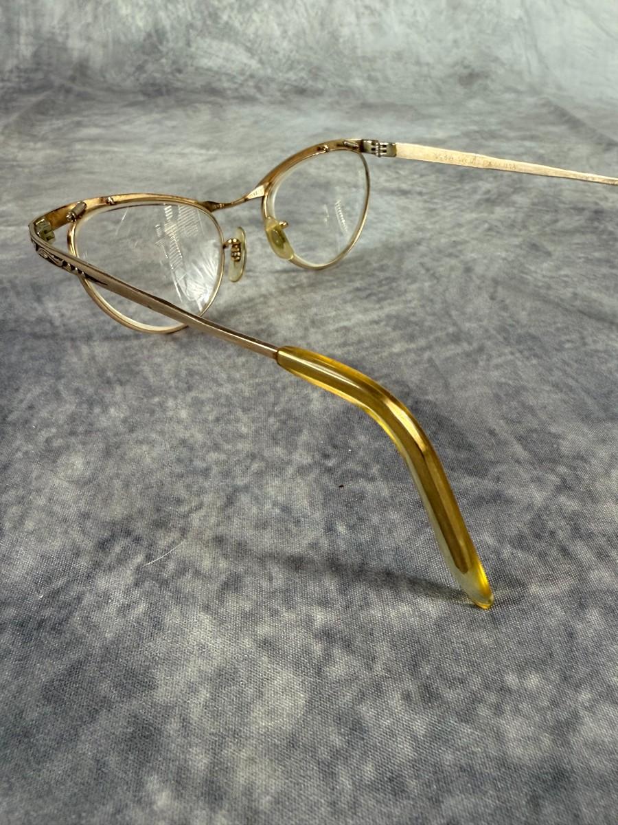 This exquisite pair of antique eyeglasses features a 12K gold-filled frame, combining durability with classic luxury. Accompanied by its original protective case, these glasses represent timeless craftsmanship and sophisticated style from a bygone era.