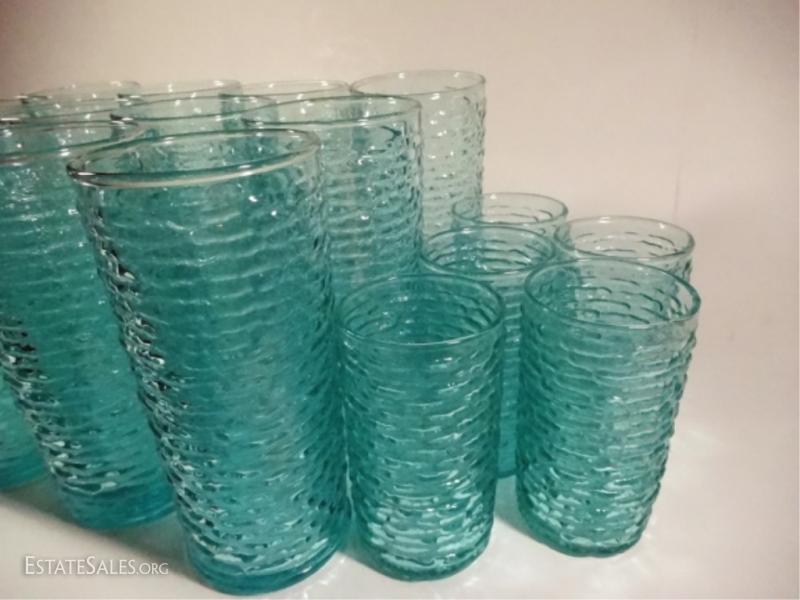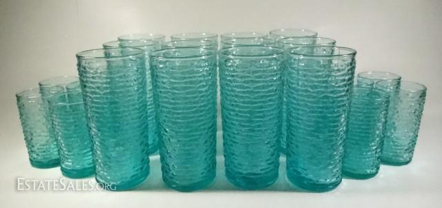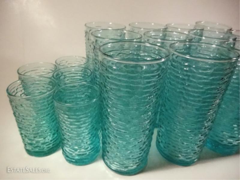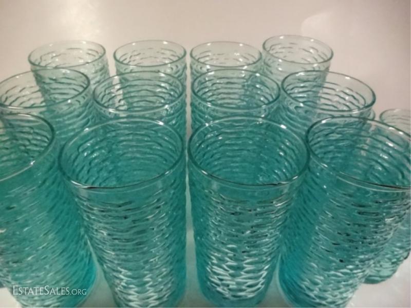 LOT 14: 22 PC VINTAGE TUMBLERS & JUICE GLASSES, AQUAMARINE / TURQUOISE