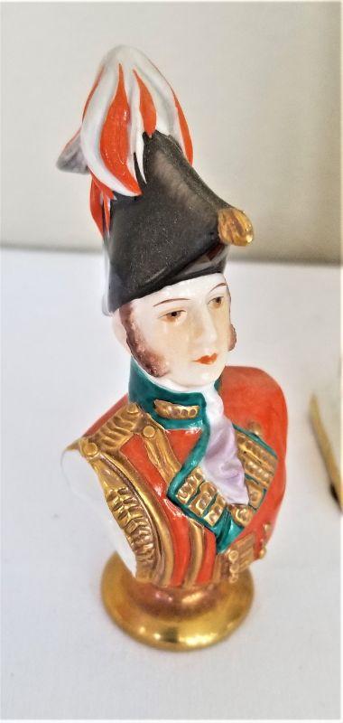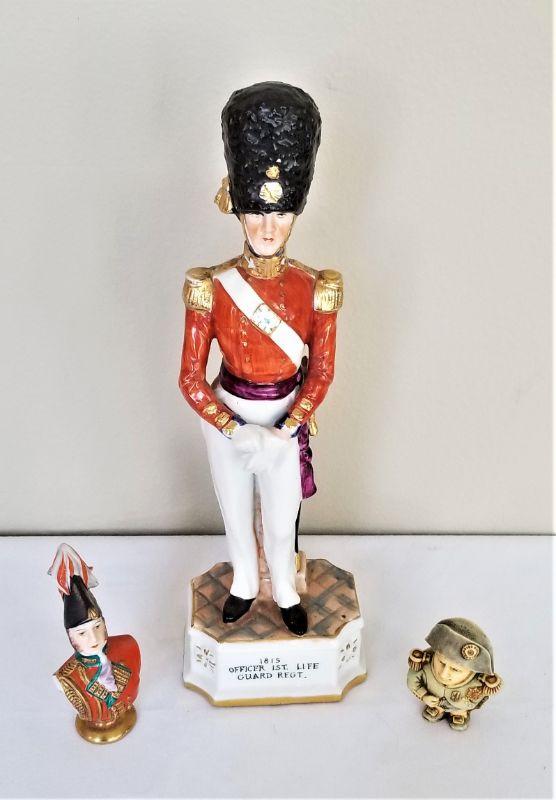You get all you see here - figurine of 1st Life Guard Regiment (Officer 1815), 12.5" tall, marked "Royal Crown" porcelain, a porcelain bust of a General of 1815, 4" tall, and a contemporary resin rendering of Napoleon, 2.5" tall. He is actually a little box.