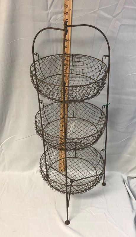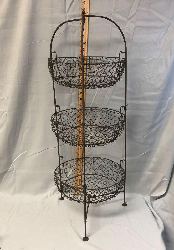 Lot 14 - 3 Tier Metal Wire Basket Stand LOCAL PICK UP ONLY