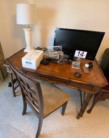 Seven Seas by Hooker Furniture Desk, AOC LED Moniter. Dimensions: Desk= 30"H x 32"D x 54"W.