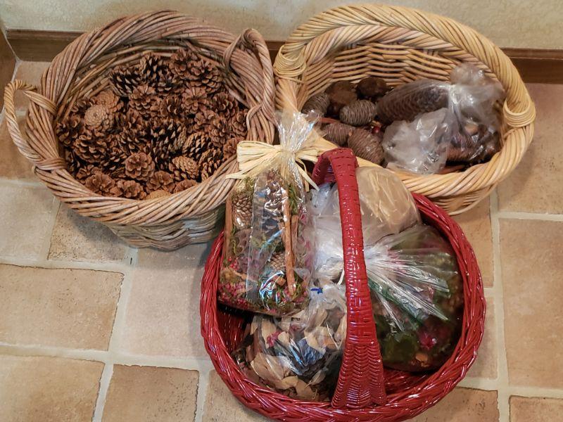 Lot 14: (3) Baskets of Pinecones and Potpourri