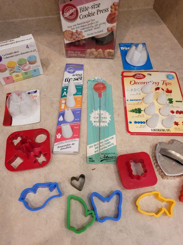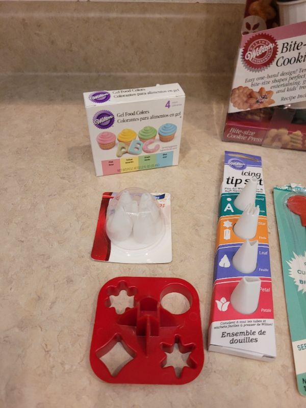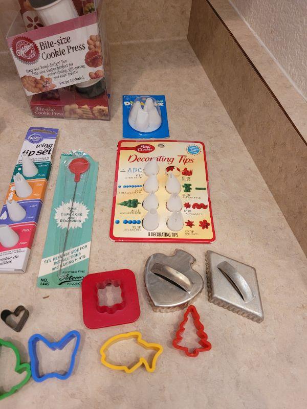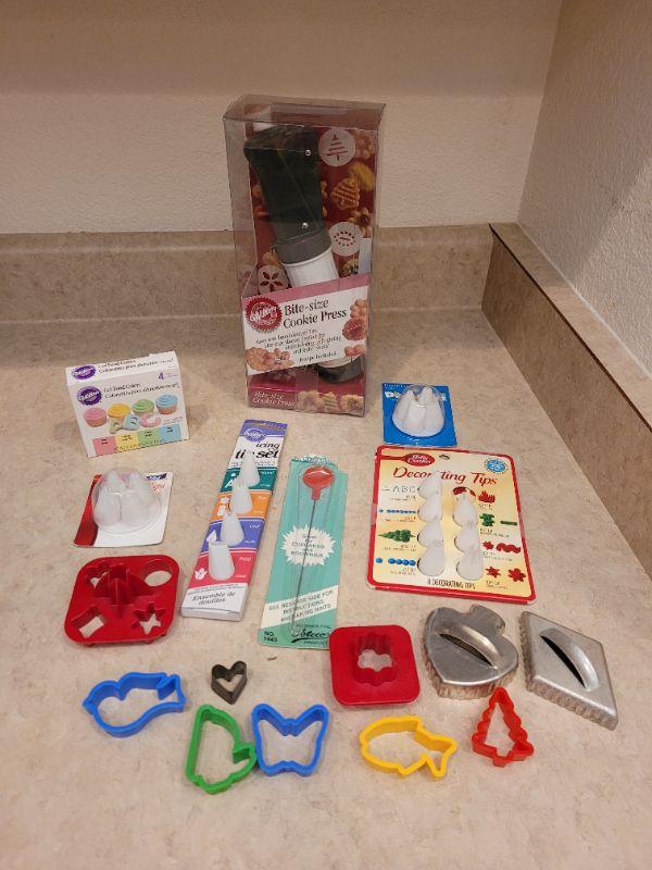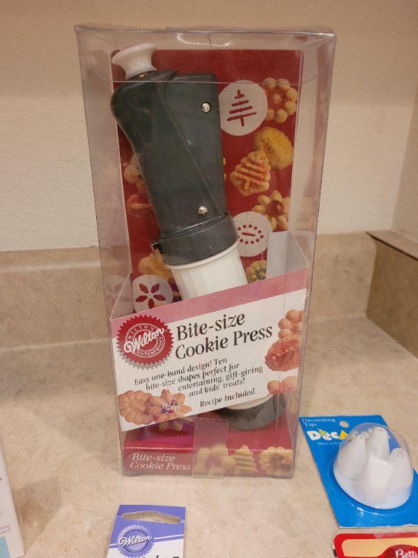 Lot 14: New Wilton's Bite Size Cookie Press, Decorating Tips & Cookie Cutters Lot