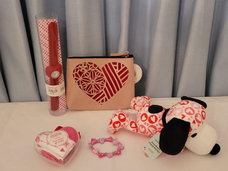 Lot 14: NEW Valentine's Zipper Pouch, Socks, Bracelet, Watch & Snoopy