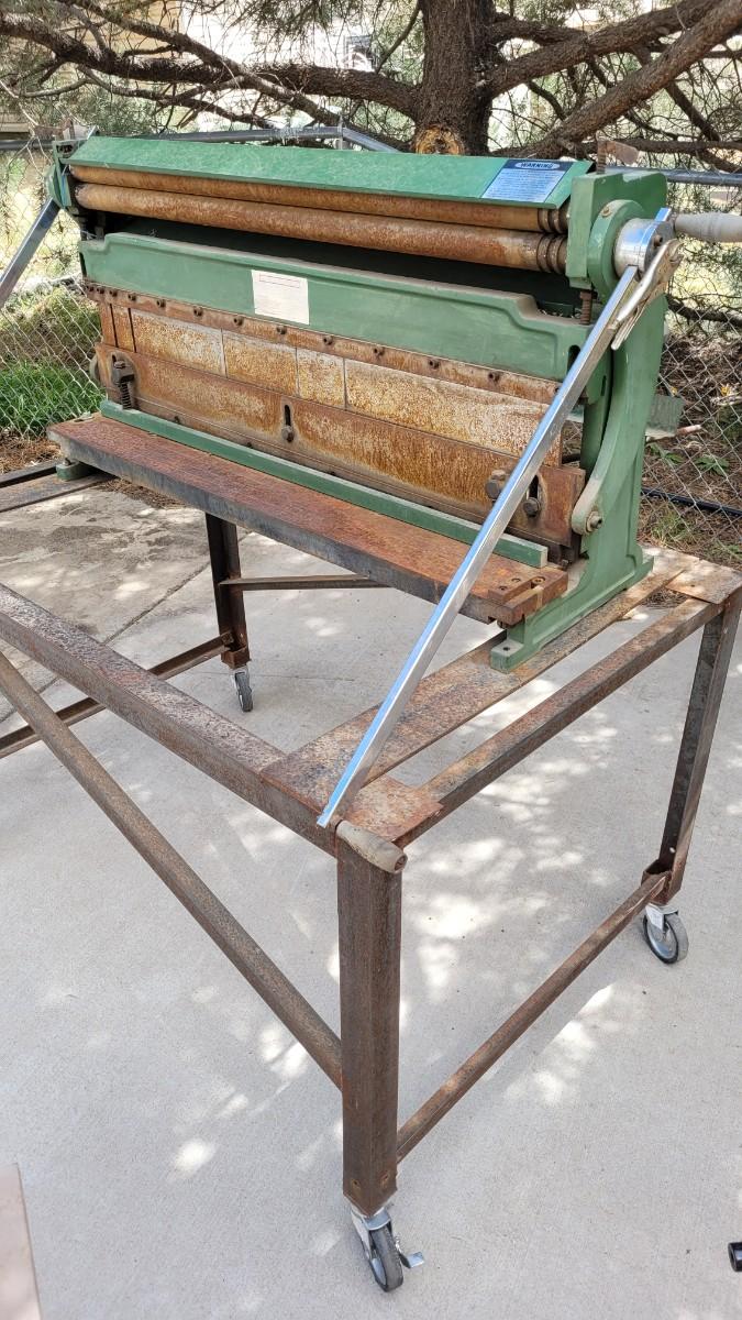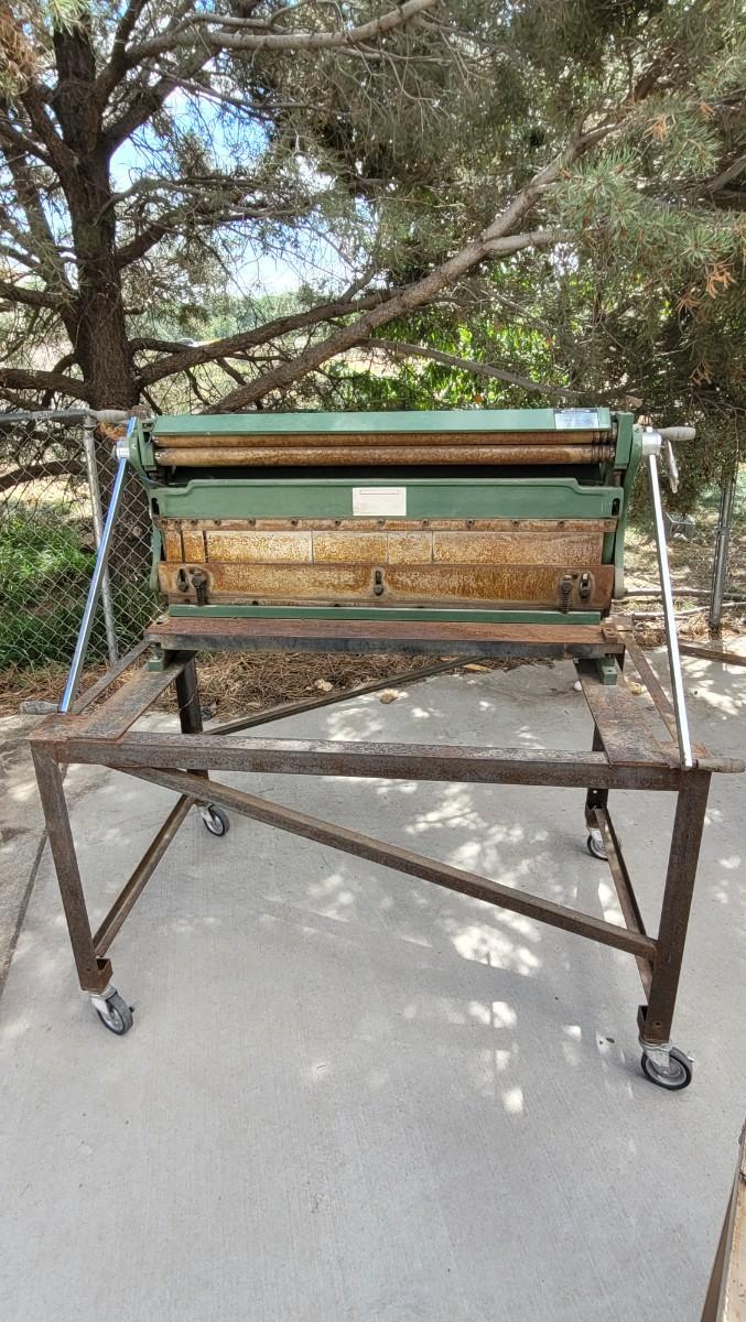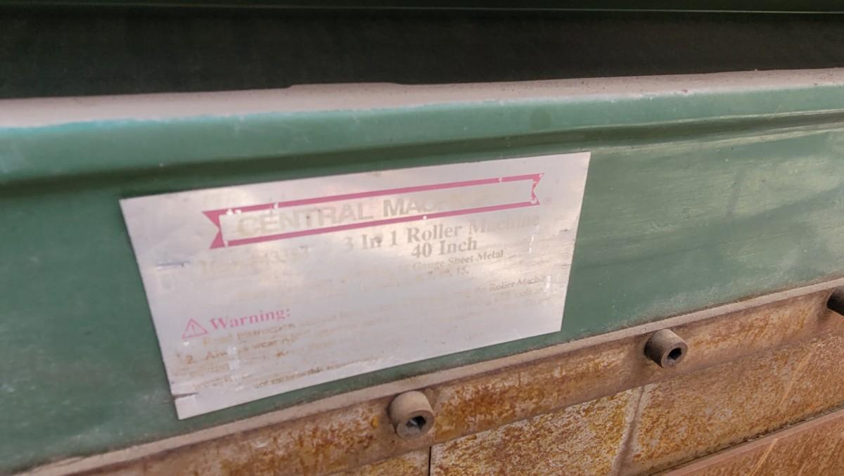 Lot 14: Vintage CENTRAL MACHINERY 40" 3 in 1 Roller Machine on Metal Frame Table w/ Wheels