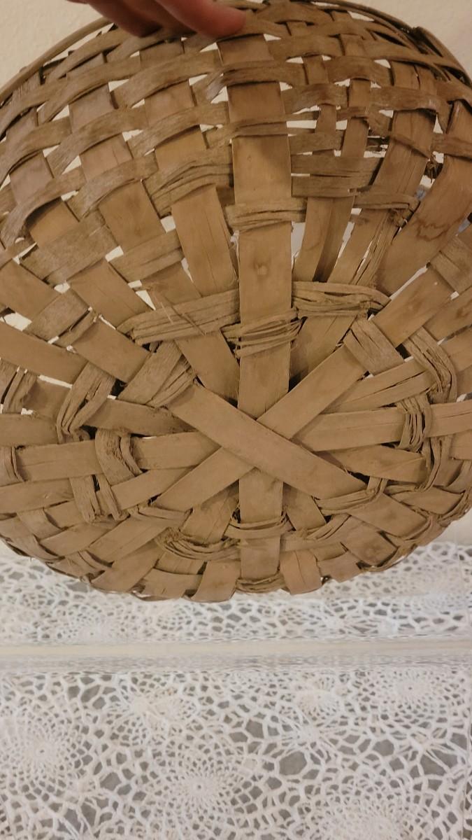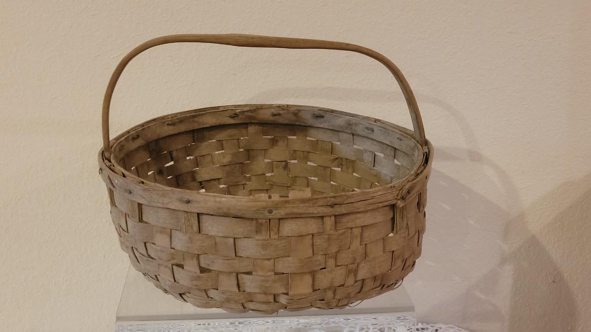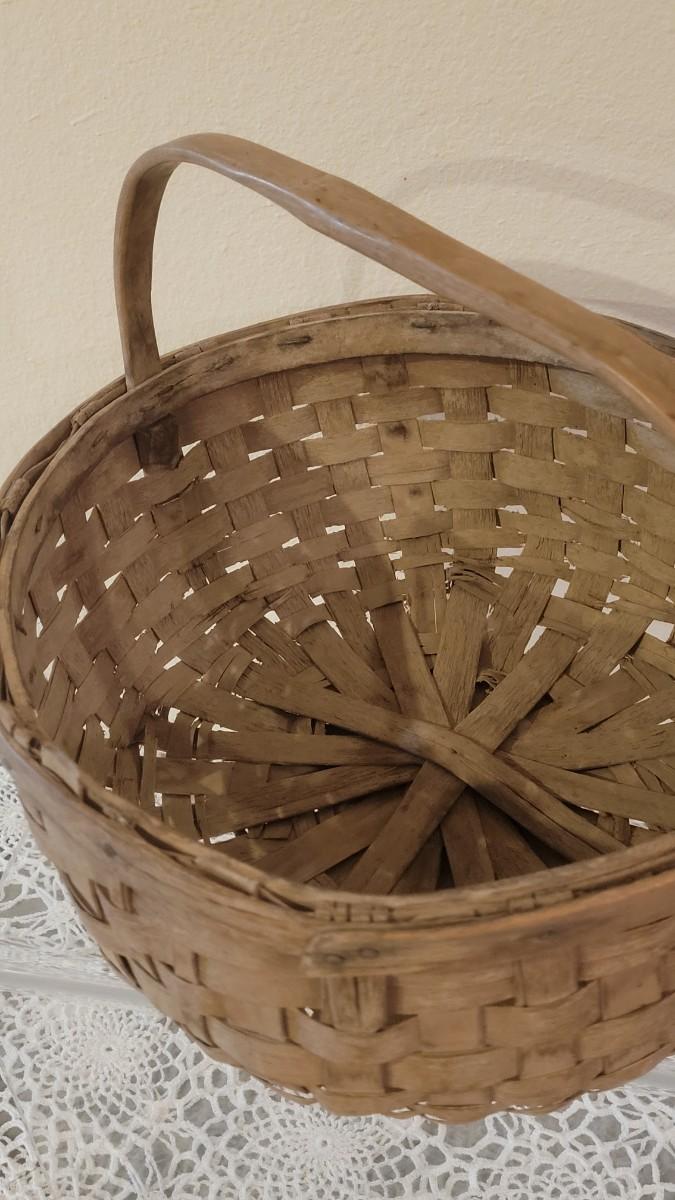 Lot 14: Antique Primitive Splint Wood Gathering Basket with Wood Handle