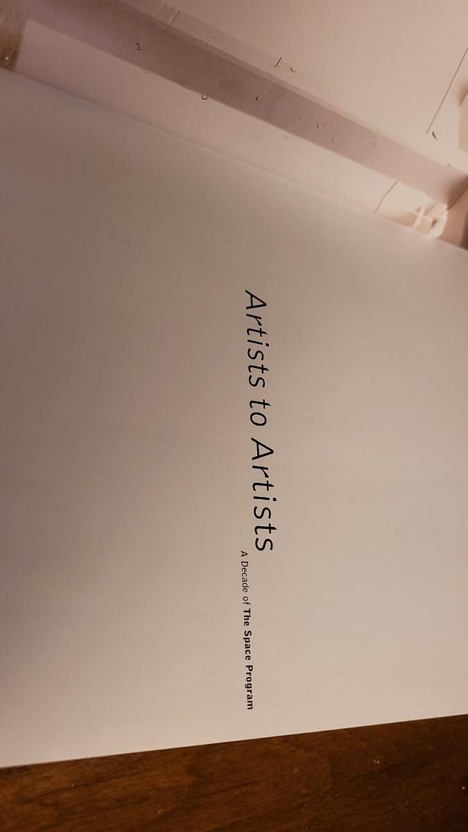 Artists to Artists presents a chronological history of the Space Program. The sections begin with the names of the artists, the jury that selected them, and quotes from two participants about their Space experience. Each artist is given a two-page spread with two large color reproductions and a brief list of selected exhibitions and bibliographic references. The outer pages of the book's gatefold cover show views of bright and spacious artist studios, welcoming the reader to step inside. The reverse pages display a bustling portrait gallery of 161 artists in their studios. Artists to Artists is a handsome and eloquent tribute to how proper workspace and focused support can seed and nurture the creative process. The elegant, sensitive design by Pascale Willi of xheight, inc., New York features 322 reproductions and generously offers a second gift of space to the 161 artists profiled. I am sure that arts professionals will use this publication as a valued resource for years to come