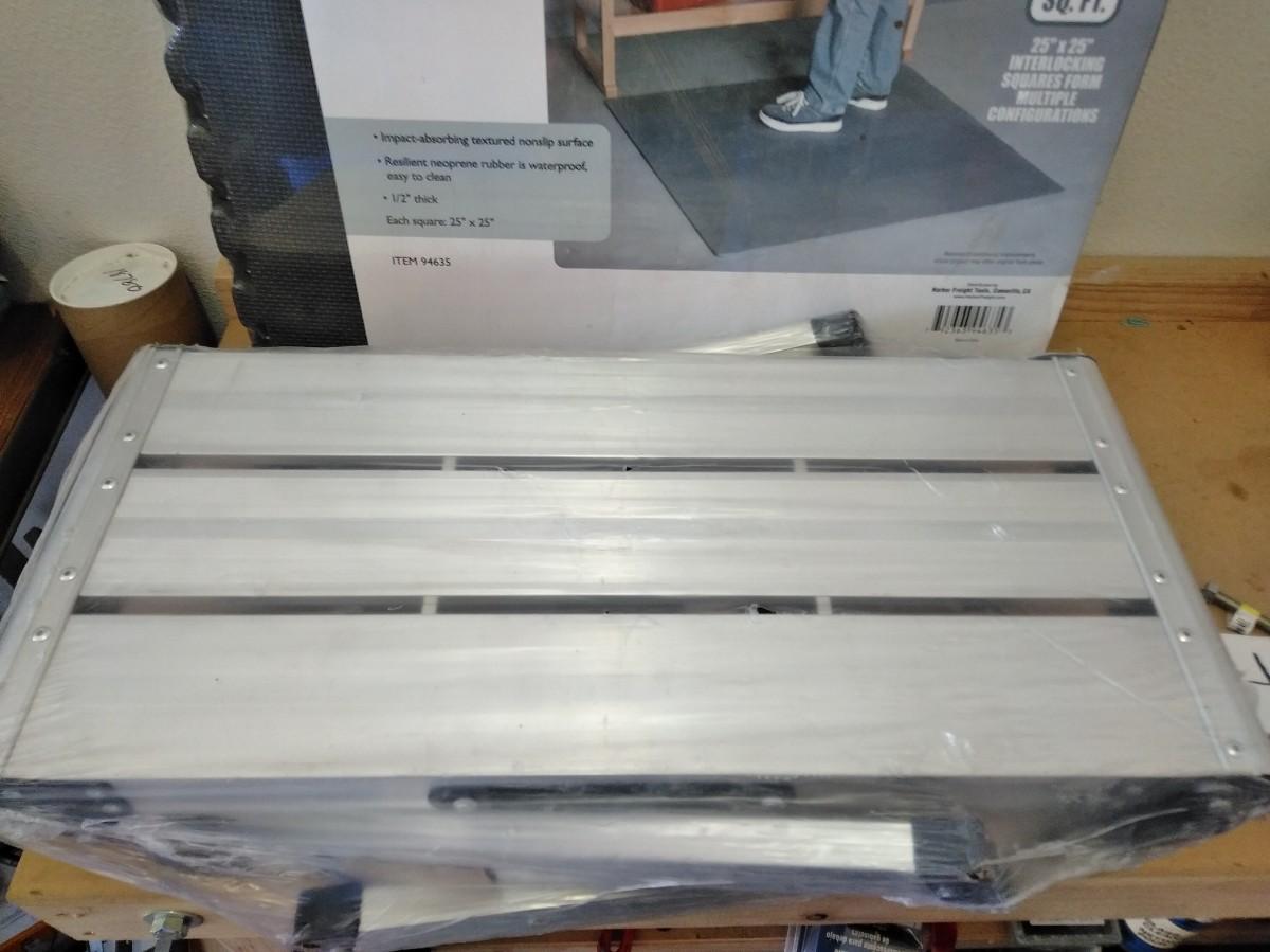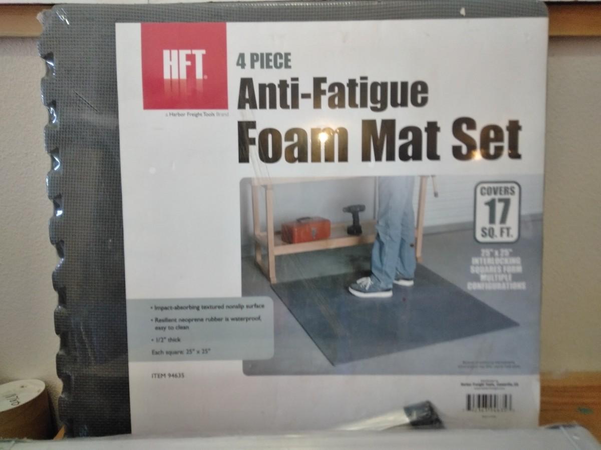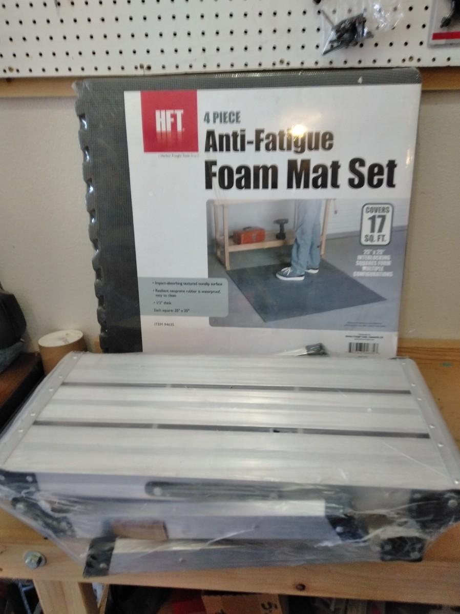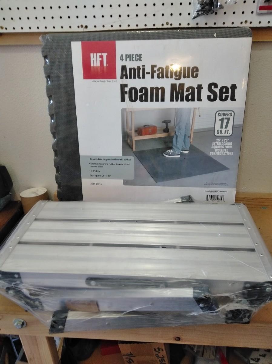 4 PIECE ANTI FATIGUE MAT AND ALUMINUM FOLDING STOOL