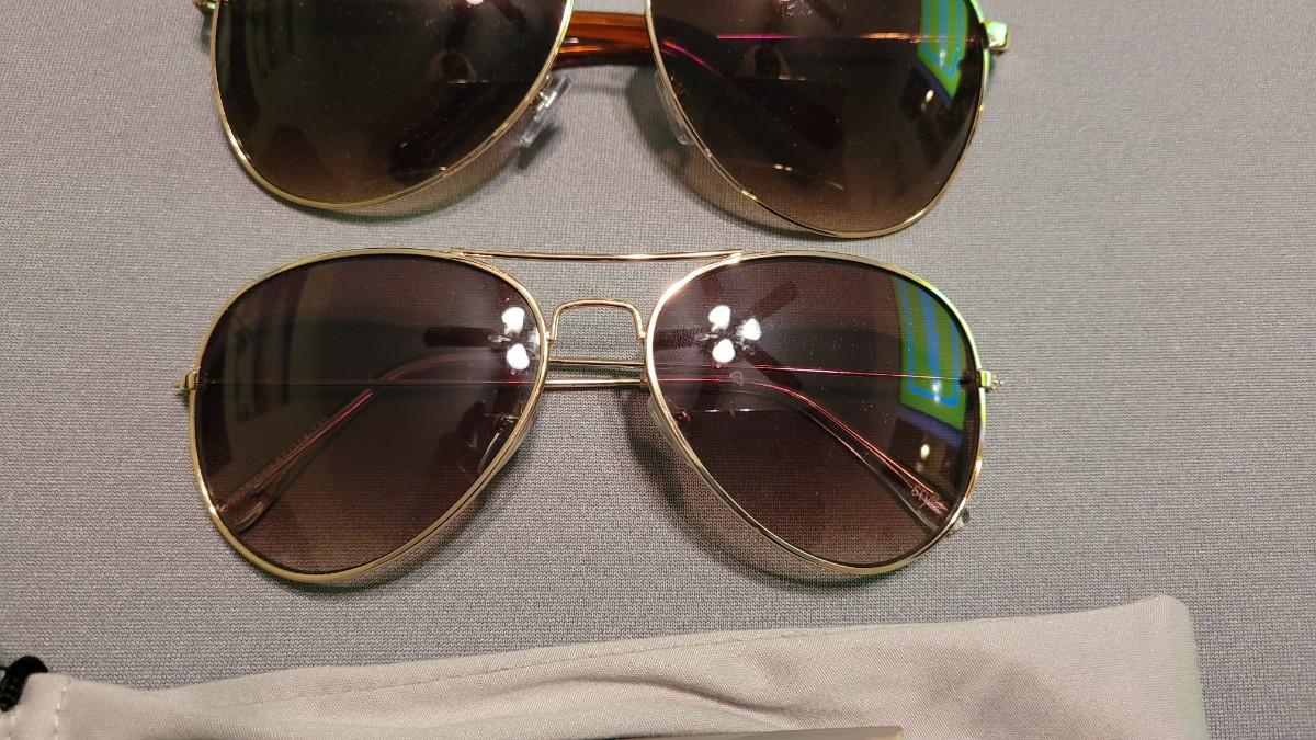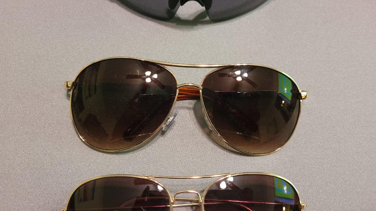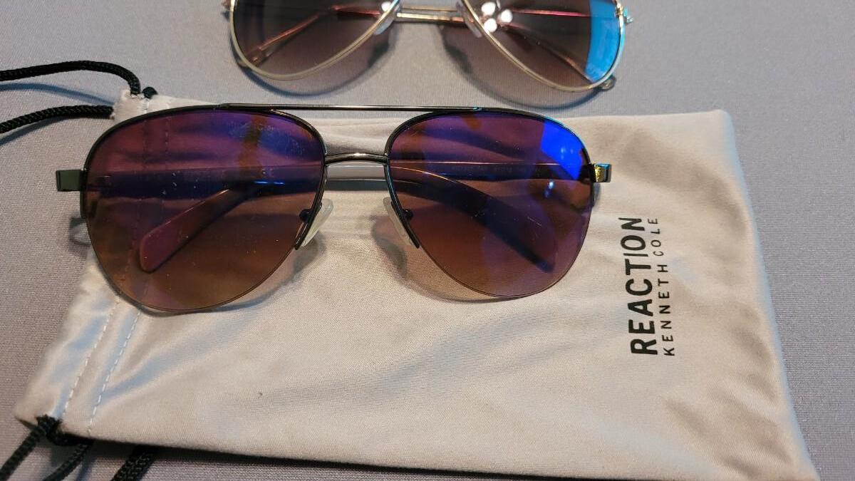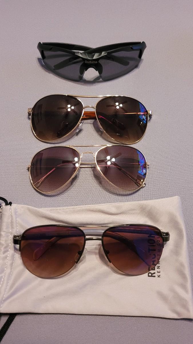 One pair of the aviators are Kenneth Cole Reaction, others not marked. Sports sunglasses are Duduma.