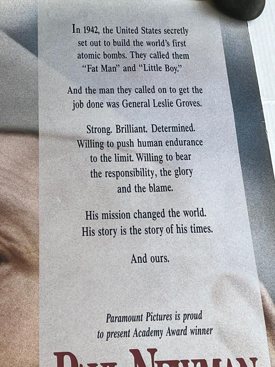 LOT 14: Fatman And Little Boy Movie Poster 1989 - 40"X27"