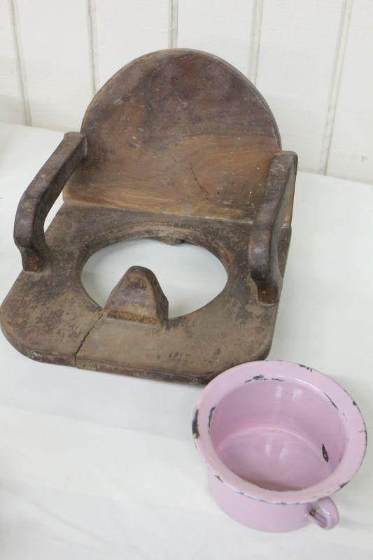 Lot 14 Antique Child's Potty Chair & Pink Enamel Bed Pan