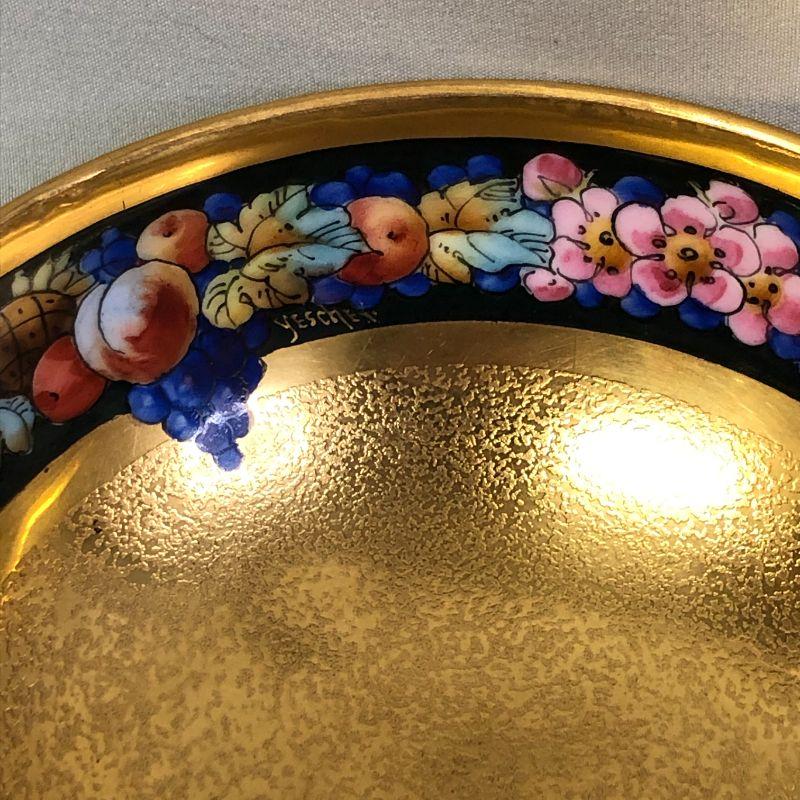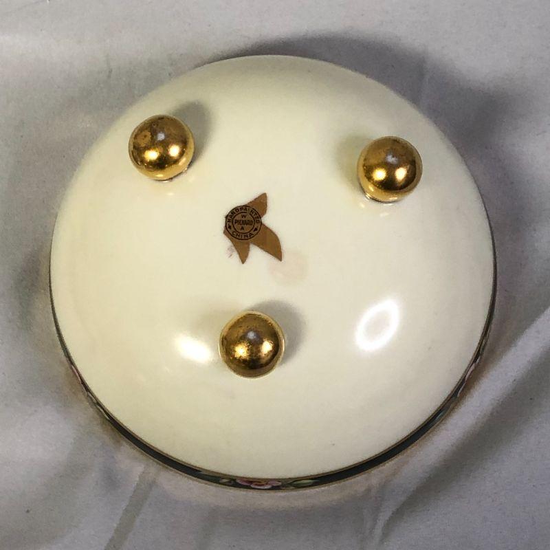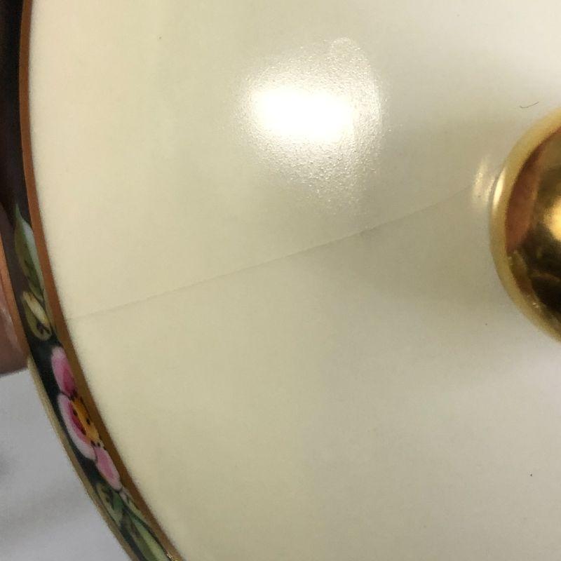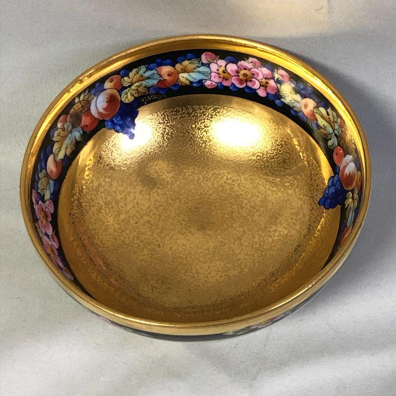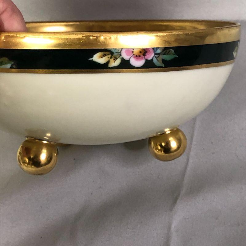 This bowl is beautiful and in in a like new condition even though it was made between 1912-1918 based on the stamp on the bottom. There is a very, very fine crack that I had a hard time finding. I could hear it when tapping the bowl, but it took me a long time to find it because it is so tight. Other than that crack, this bowl would be pristine. It is just shy of 5.5" in diameter.