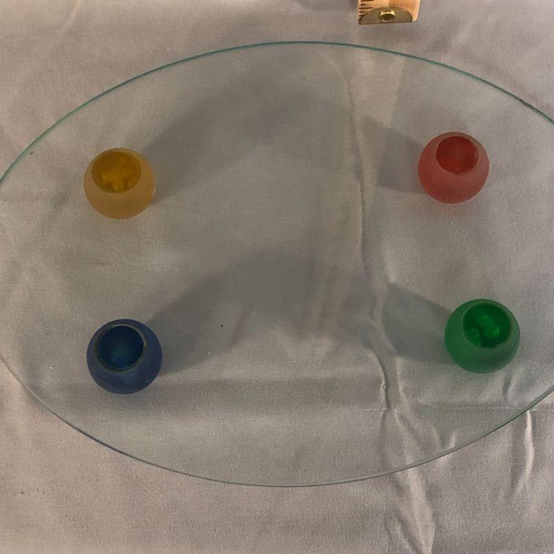 This tray is in excellent condition and would be a great way to add a splash of color to your bathroom or vanity. It is 11" x 8", and stands about 1.25" tall.