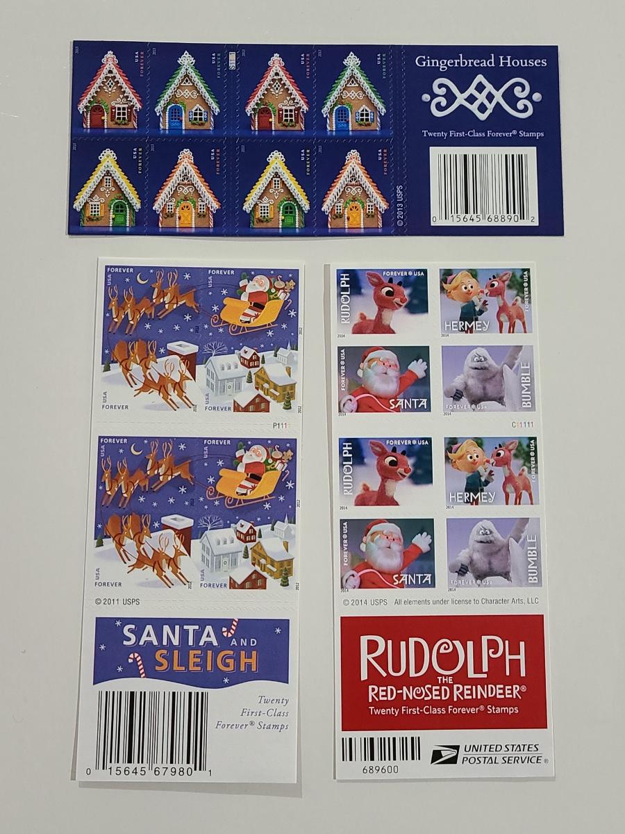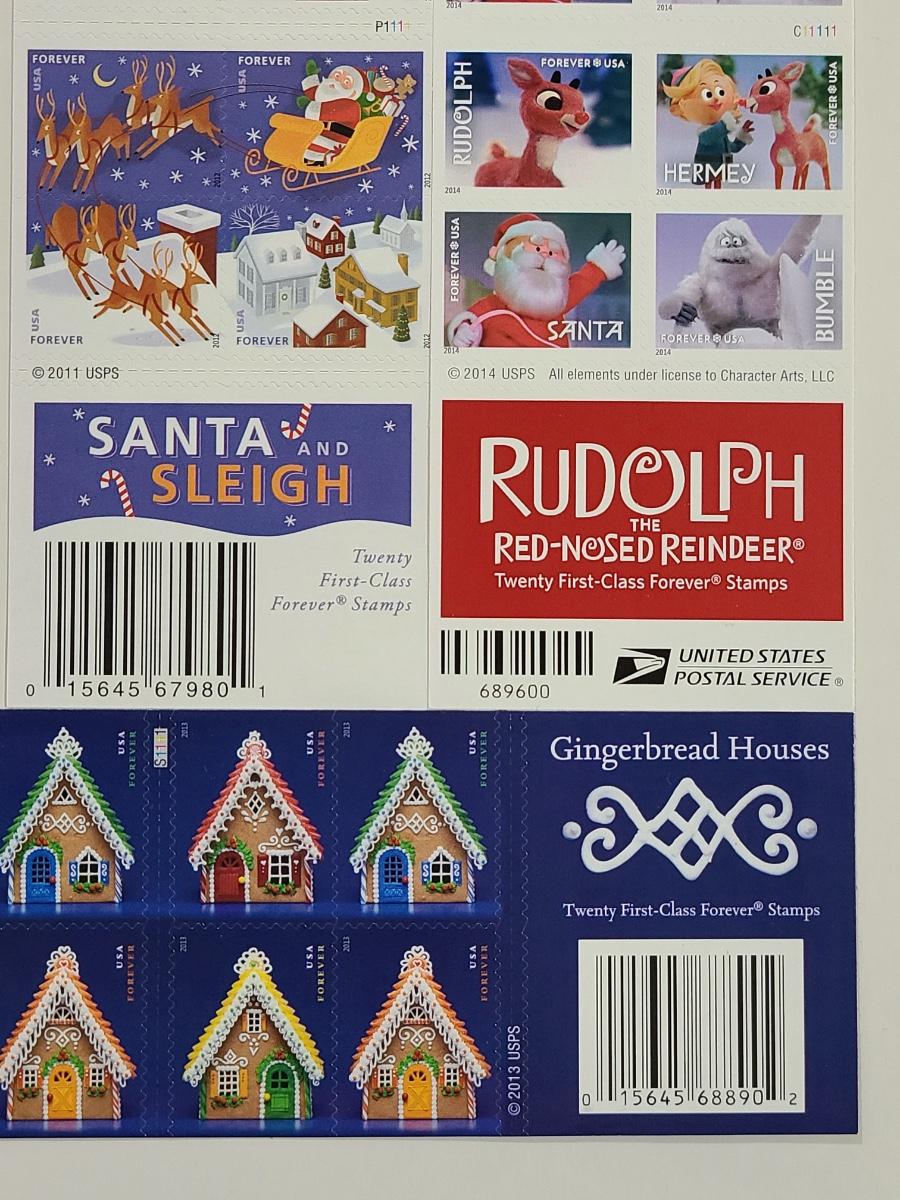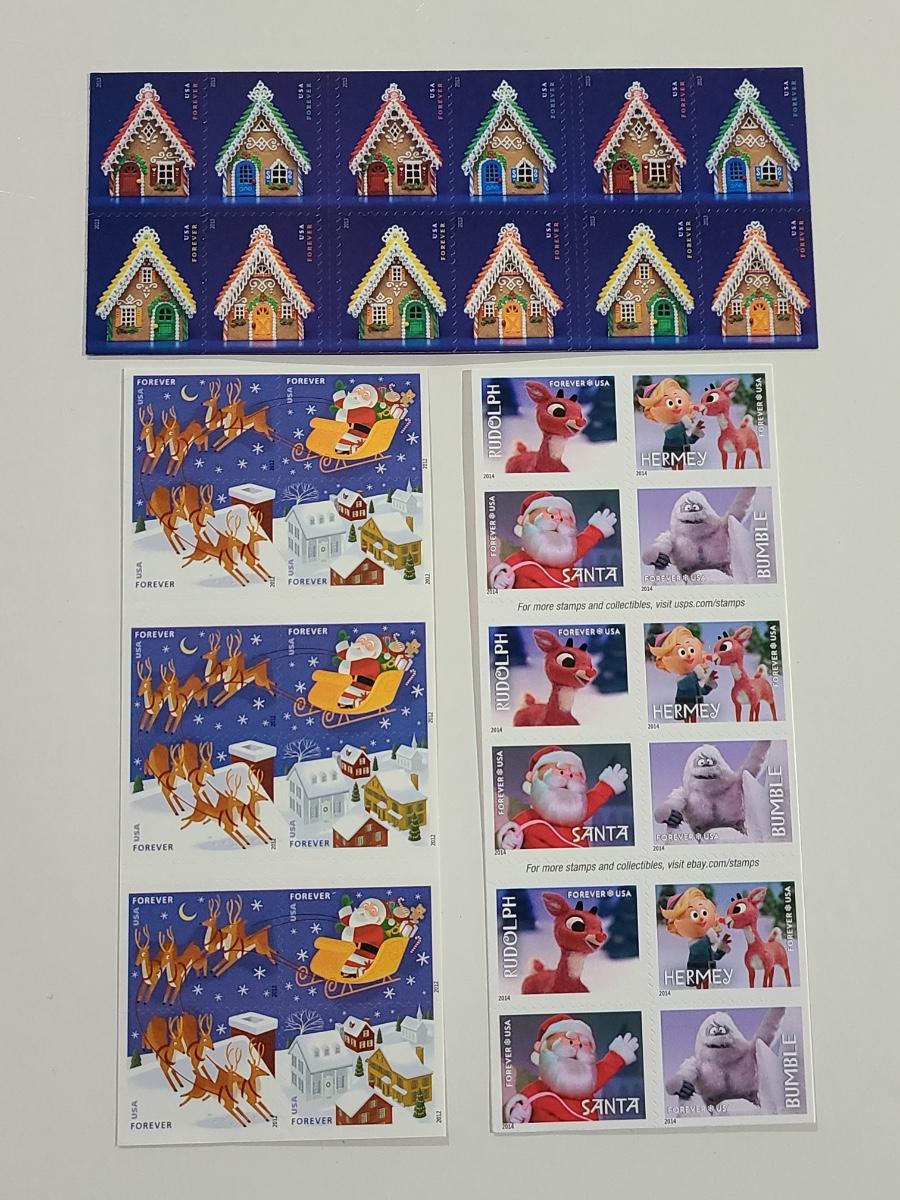 Lot 14: Holiday Forever Stamps: Rudolph, Gingerbread Houses, Santa & Sleigh (60 Stamps)