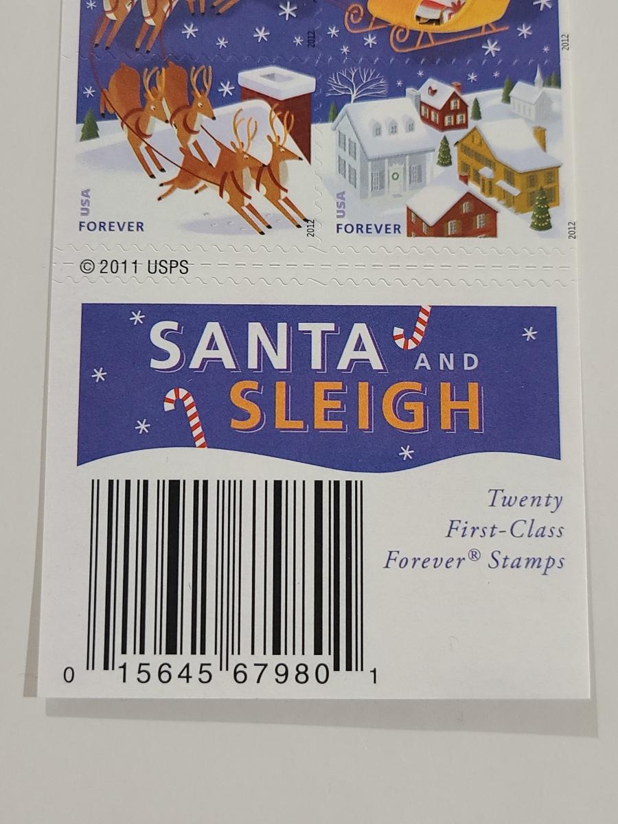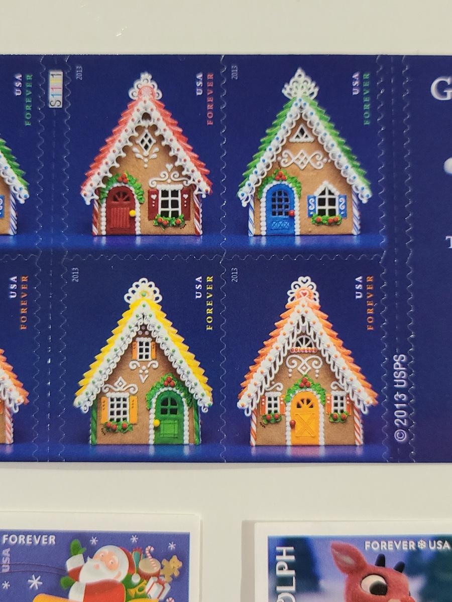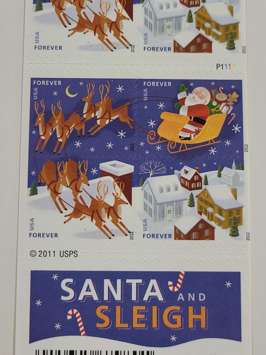 Lot 14: Holiday Forever Stamps: Rudolph, Gingerbread Houses, Santa & Sleigh (60 Stamps)